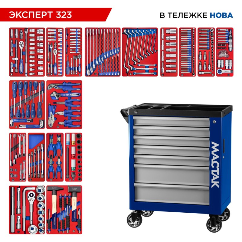 Набор инструментов 323 предмета, "ЭКСПЕРТ 323", в синей тележке МАСТАК 50-07323B купить в СПб цена ✅ - Все для СТО