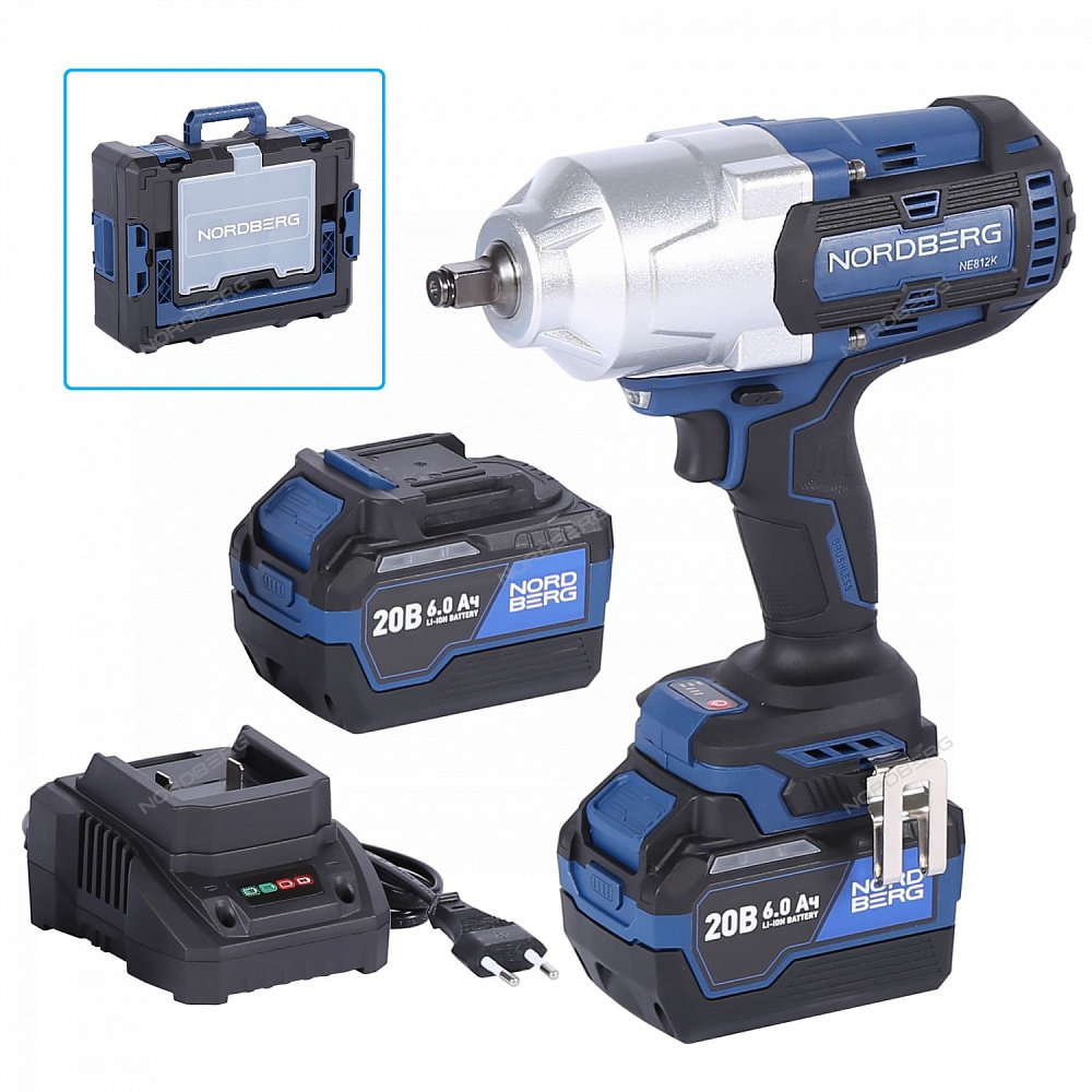 Гайковерт аккумуляторный, 1/2", 21 В, 1700 Нм, 2 аккумулятора 6A и зарядное устройство, в кейсе NORDBERG NE812K купить в СПб цена ✅ - Все для СТО