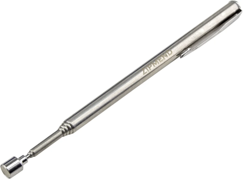 - В торце телескопической части установлен мощный неодимовый магнит, позволяющий удерживать железосодержащие детали.