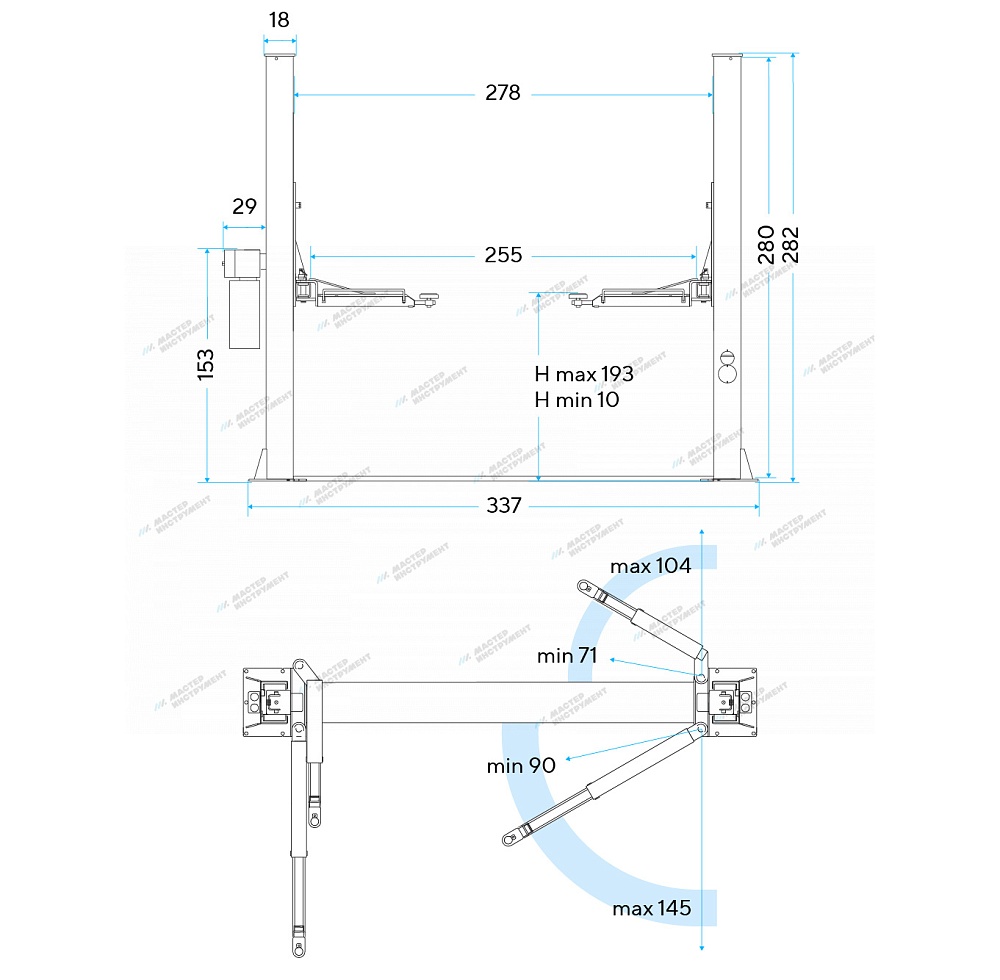 Подъемник двухстоечный 4 т с нижней синхронизацией, H=2,8 м, 220 В, синий . STX40TT_220 купить в СПб цена ✅ - Все для СТО
