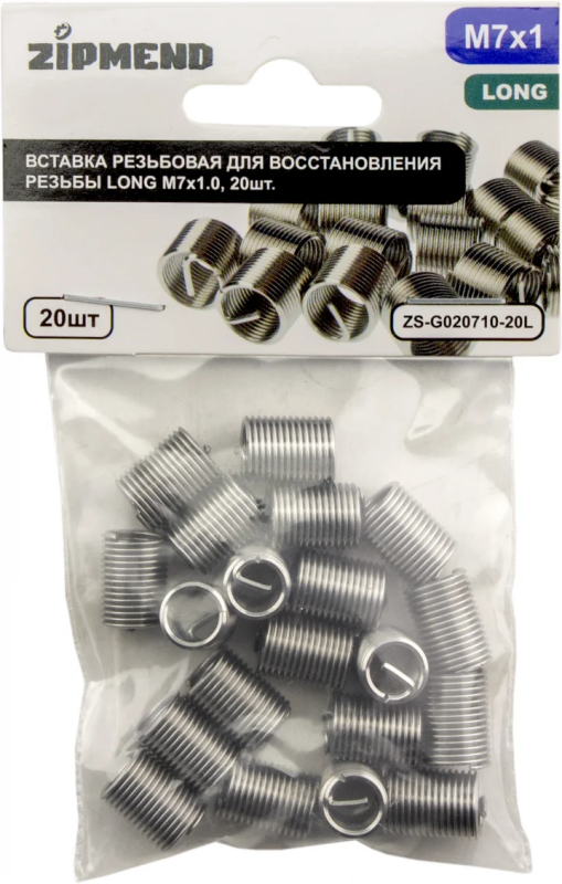 Вставка резьбовая для восстановления резьбы LONG M7 х 1.0, 20шт., ZIPMEND