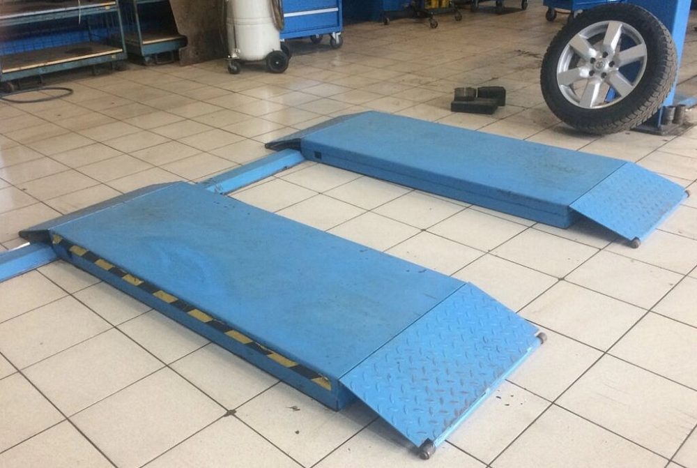 Универсальный подъемник для шиномонтажных мастерских и зоны приемки, может использоваться и как мобильный, без фиксации к полу, так и закрепленным на стационарном посте.