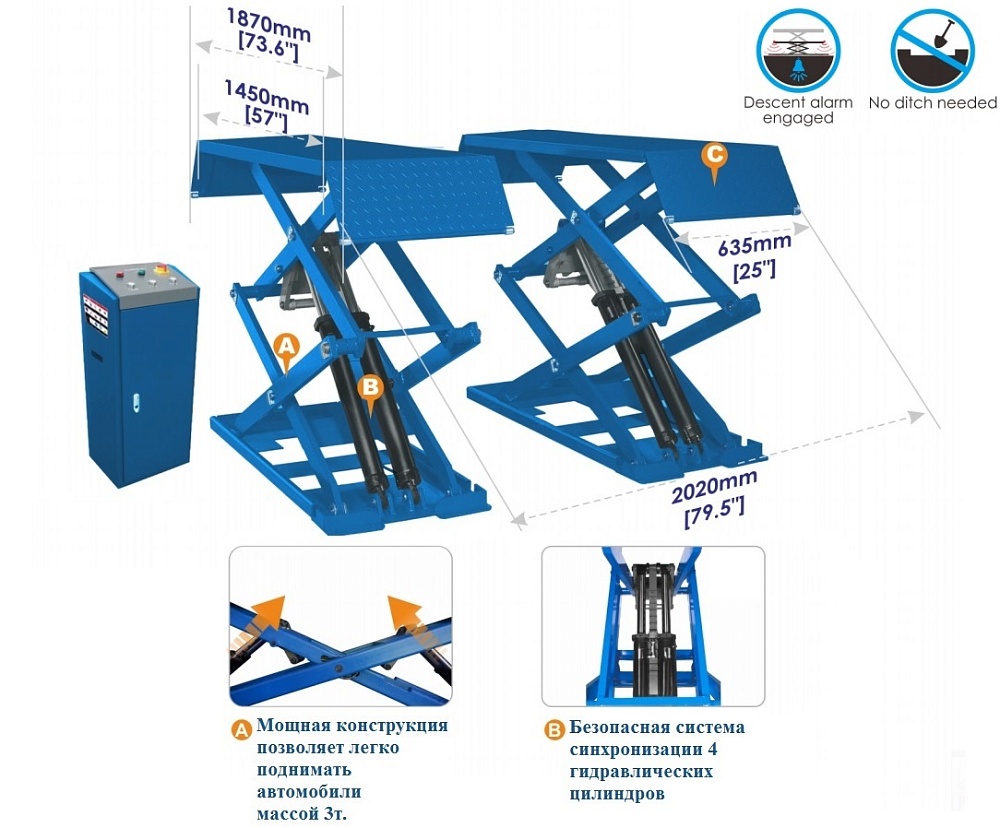 ES-1113M Подъемник ножничный г/п 3 т напольный купить в СПб цена ✅ - Все для СТО
