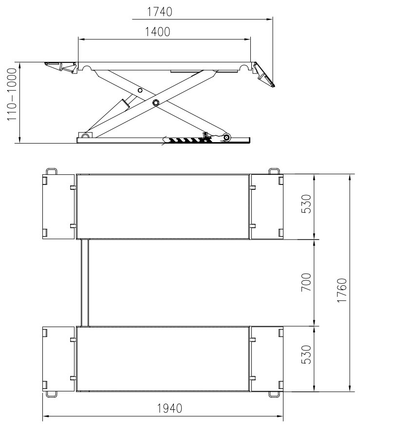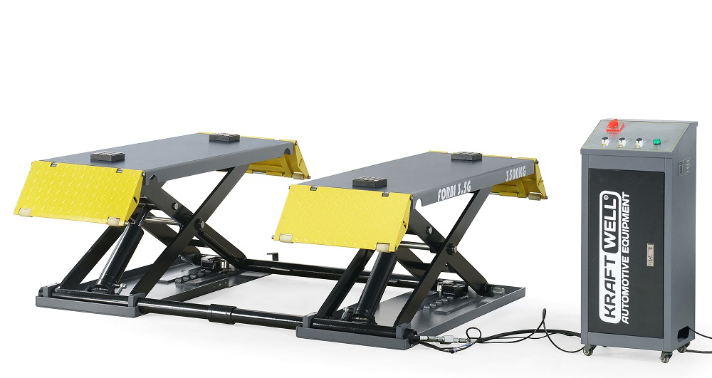 FORBI 3.5G KraftWell Подъемник комплект (2 платформы, 2 гидр, цилиндра, гидростанция) ножничный, электрогидравлический, г/п 3500 кг., 380 В, 2,2 кВт, высота подъема 1000 мм., размеры платформ 1400-1940х530 мм., клиренс 110 мм.