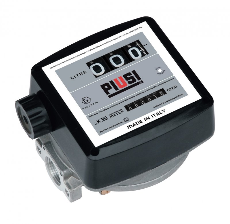Версия A - направление потока справа налево. Новый механический счетчик литров для индивидуального пользования, позволяющий измерить количество подаваемого материала (бензина, керосина, дизельного топлива), соответствует требованиям ATEX, относящимся к использованию оборудования в потенциально взрывоопасных атмосферах. Надежный, экономичный, простая установка и калибровка на месте установки. Кроме того, благодаря низкому сопротивлению потоку, его можно использовать при подачи самотеком. Счетчик литров K33 ATEX можно установить как на жесткие, так и на гибкие трубы, или непосредственно на насосы и резервуары. Классификация машины: Группа II, категория 2 G c IIB T=85°C (T6), таким образом, счетчик литров можно использовать в зонах класса “1” и “2” согласно классификации Директивы 99/92/EC
