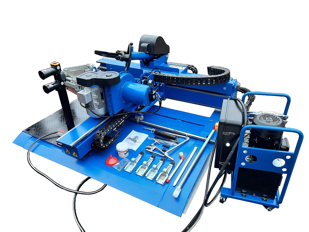 Грузовой шиномонтажный станок оборудован механизмом фиксации поворотной инструментальной консоли.