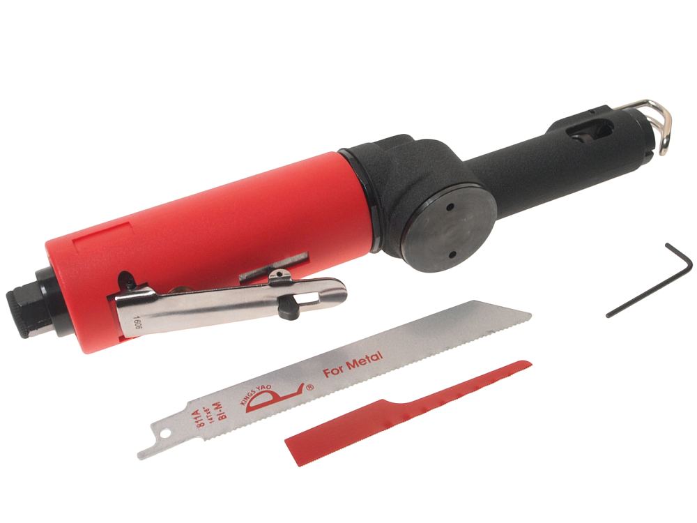 Ножовка пневматическая для резки различных материалов. Скорость хода: 7 500 ход/мин. Длина хода: 10 мм. Толщина среза: 3,0 низкоуглеродистая сталь. Масса: 0,94 кг. Длина: 267 мм. Расход воздуха: 4 CFM. Размер воздушного штуцера: 1/4". Размеры шланга: 5/16".
