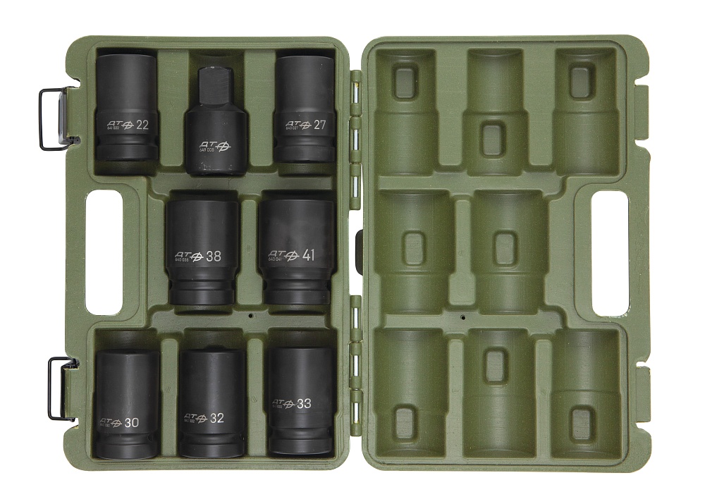 Набор торцевых головок для грузового гайковерта (7шт.) 4-гранная: 22 мм; 6-гранные: 27, 30, 32, 33, 38, 41 мм; удлинитель 1" 80 мм;