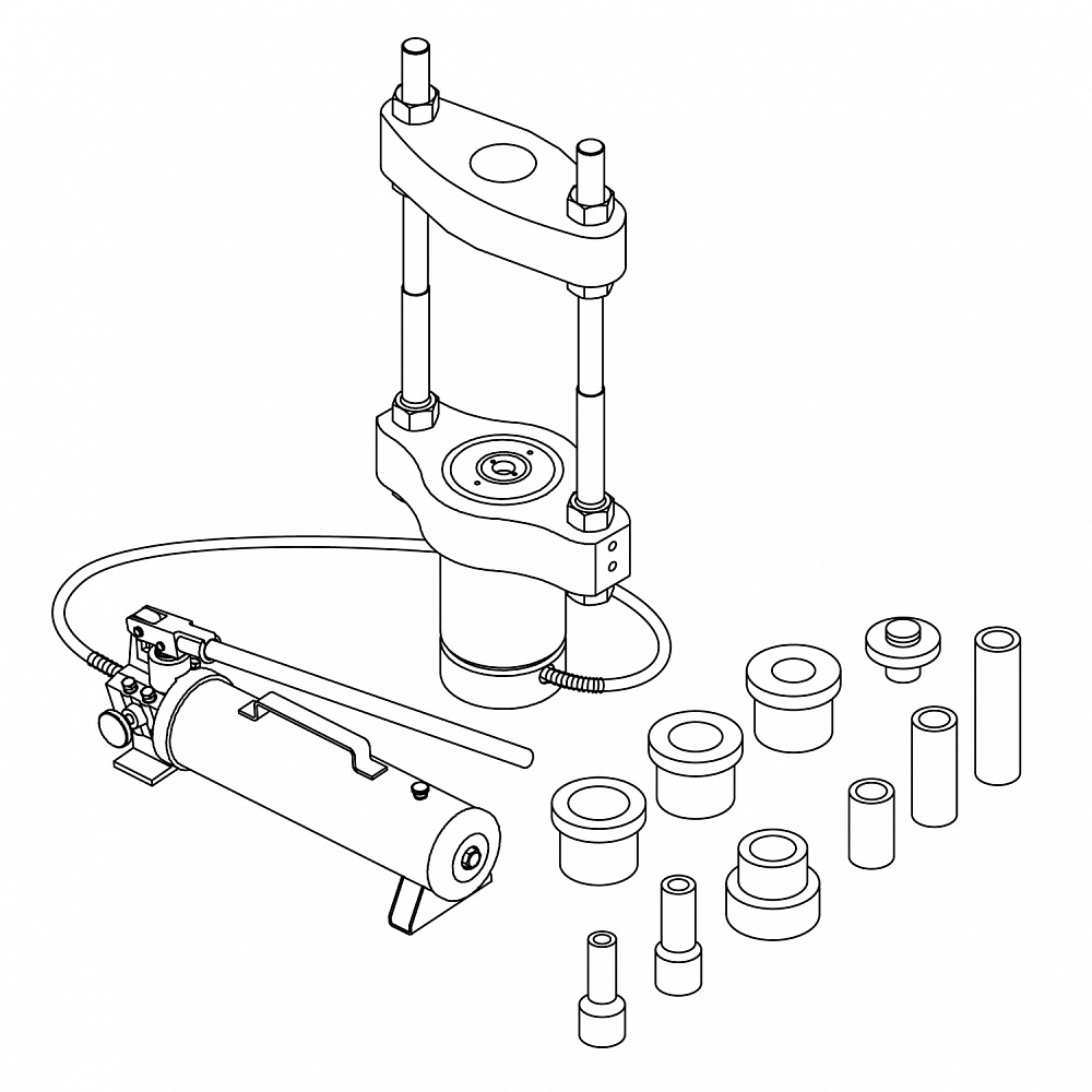 Набор адаптеров —для обеспечения совместимости с различными типами и размерами шкворней, а также для оптимизации процесса выпресовки;