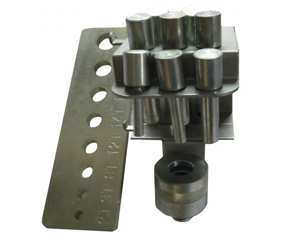 Набор из восьми пуансонов и пресс-формы для гидравлического пресса. С держателем для крепления к прессу.