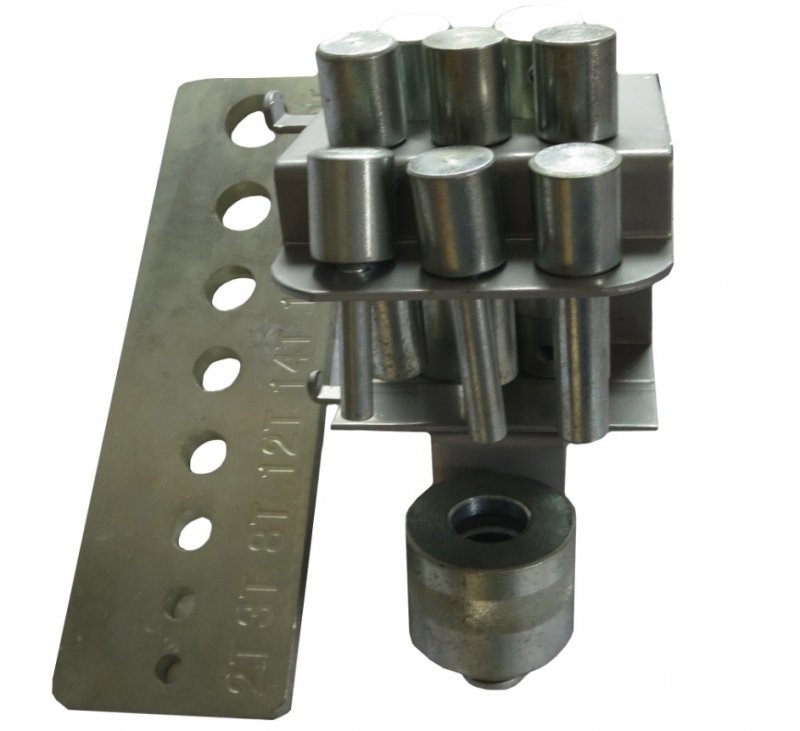 Комплект пуансонов для гидравлических прессов (8 шт.). Подходит для любых прессов. С держателем для крепления к прессу. Масса: 8 кг. Габариты: 380x185x120 мм.