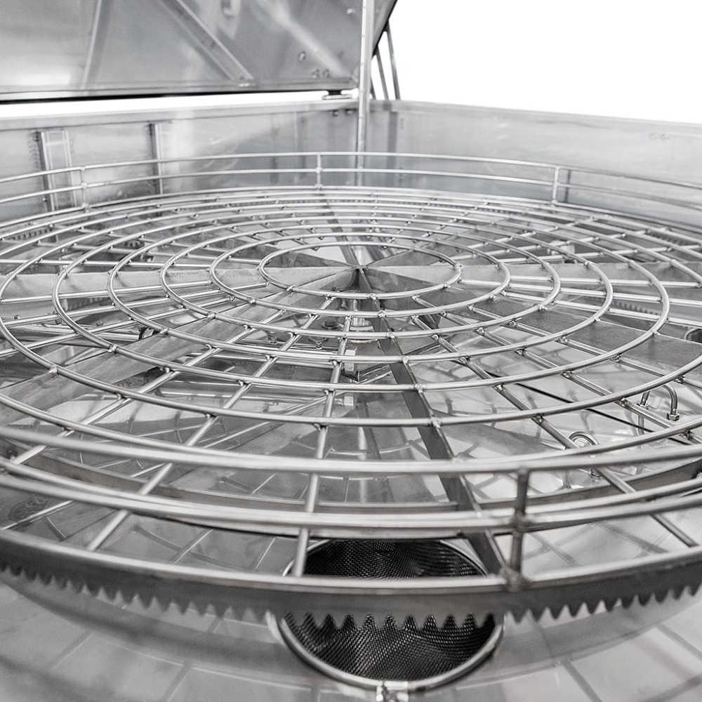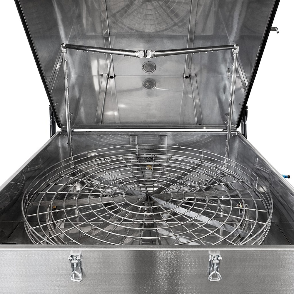 Линейка комплектуется двумя видами привода движения корзины – струйным и электромеханическим. При использовании электромеханического привода, корзина с деталями вращается равномерно с частотой 5-10 об/мин. Это обеспечивает высокое качество очистки, за счет равномерной подачи моющего раствора по всей поверхности деталей. Электромеханический привод является наиболее эффективным решением. Струйный привод накладывает ряд ограничений на эксплуатацию машины, такие как равномерное распределение изделий по весу в корзине, достаточную площадь поверхности деталей, соблюдение угла наклона.