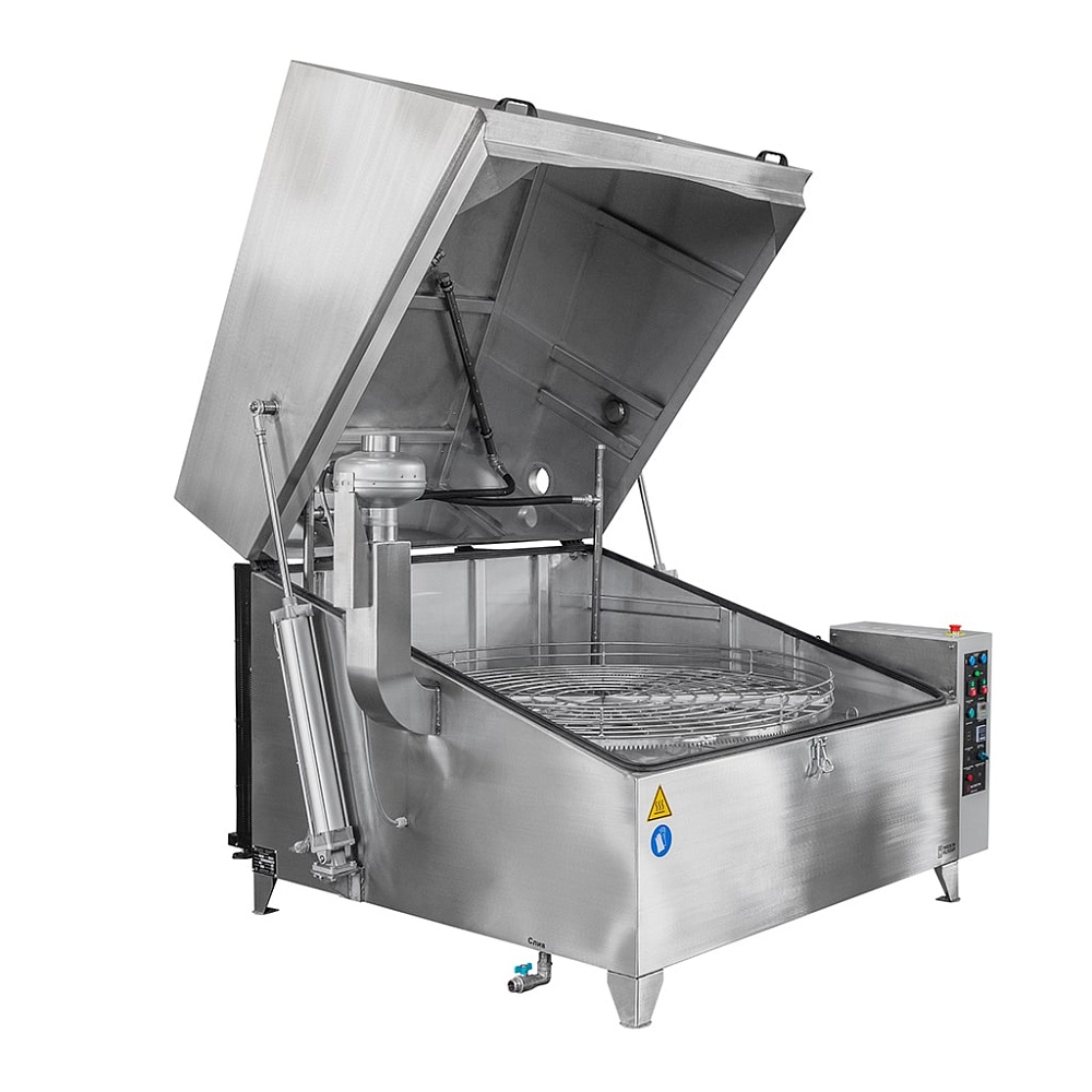 Температура и продолжительность цикла обработки задается на панели управления. Вращение корзины обеспечивает необходимое позиционирование деталей перед коллекторами. П-образная форма рамп позволяет промывать изделия сверху, снизу и сбоку в течение заданного времени. Автоматические промывочные установки серии АМ предназначены для использования со слабощелочными растворами. Для наполнения бака используется обычная водопроводная вода.