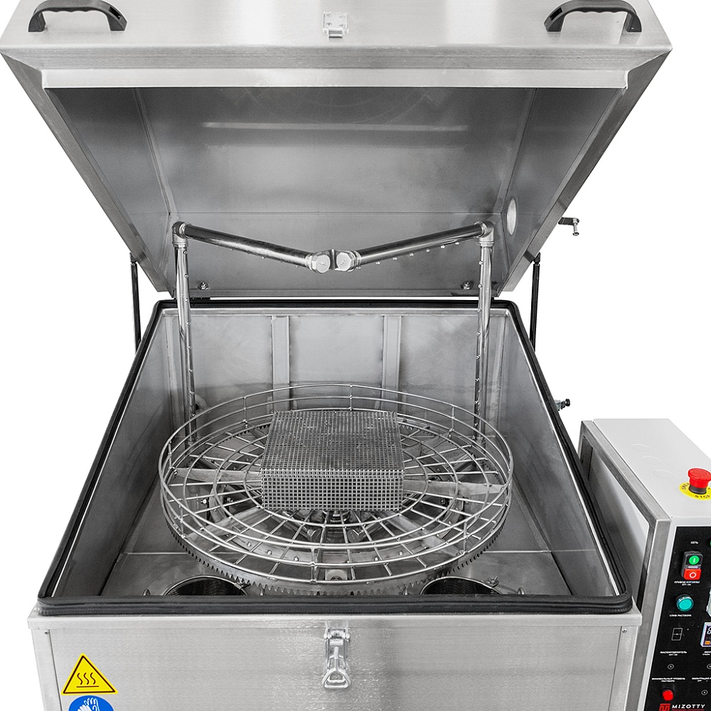 Линейка комплектуется электромеханическим приводом корзины с частотой вращения 5-10 об/мин., обеспечивающим высокое качество очистки, за счет равномерной подачи моющего раствора по всей поверхности деталей.