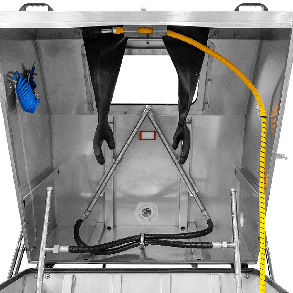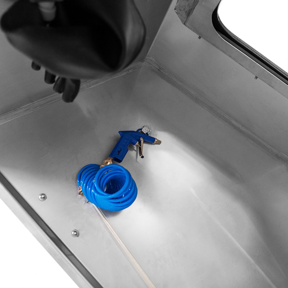 • Система ручной очистки деталей (окно с LED подсветкой, 2 педали, автономный насос, пневмопистолет, промывочный пистолет)