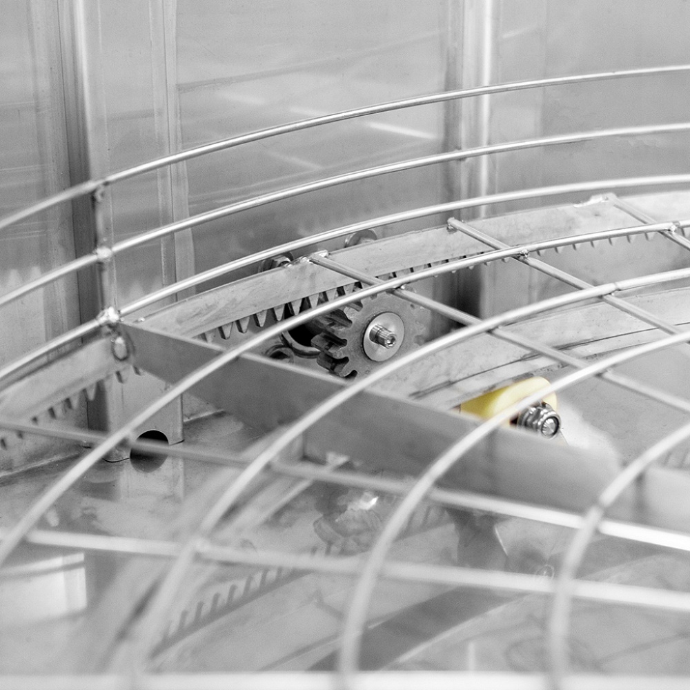 Линейка комплектуется электромеханическим приводом корзины с частотой вращения 5-10 об/мин., обеспечивающим высокое качество очистки, за счет равномерной подачи моющего раствора по всей поверхности деталей.