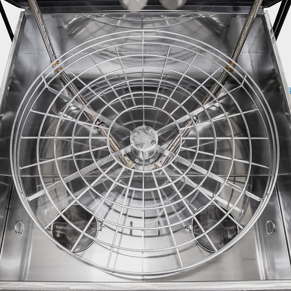 Линейка комплектуется двумя видами привода движения корзины – струйным и электромеханическим. При использовании электромеханического привода, корзина с деталями вращается равномерно с частотой 5-10 об/мин. Это обеспечивает высокое качество очистки, за счет равномерной подачи моющего раствора по всей поверхности деталей. Электромеханический привод является наиболее эффективным решением. Струйный привод накладывает ряд ограничений на эксплуатацию машины, такие как равномерное распределение изделий по весу в корзине, достаточную площадь поверхности деталей, соблюдение угла наклона.