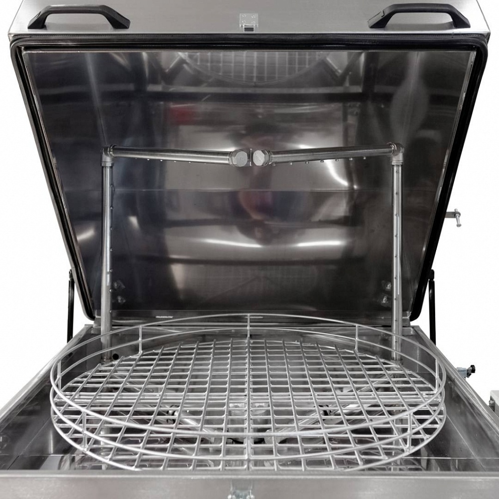 Линейка комплектуется двумя видами привода движения корзины – струйным и электромеханическим. При использовании электромеханического привода, корзина с деталями вращается равномерно с частотой 5-10 об/мин. Это обеспечивает высокое качество очистки, за счет равномерной подачи моющего раствора по всей поверхности деталей. Электромеханический привод является наиболее эффективным решением. Струйный привод накладывает ряд ограничений на эксплуатацию машины, такие как равномерное распределение изделий по весу в корзине, достаточную площадь поверхности деталей, соблюдение угла наклона.