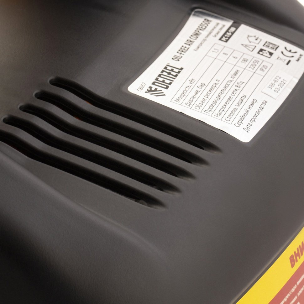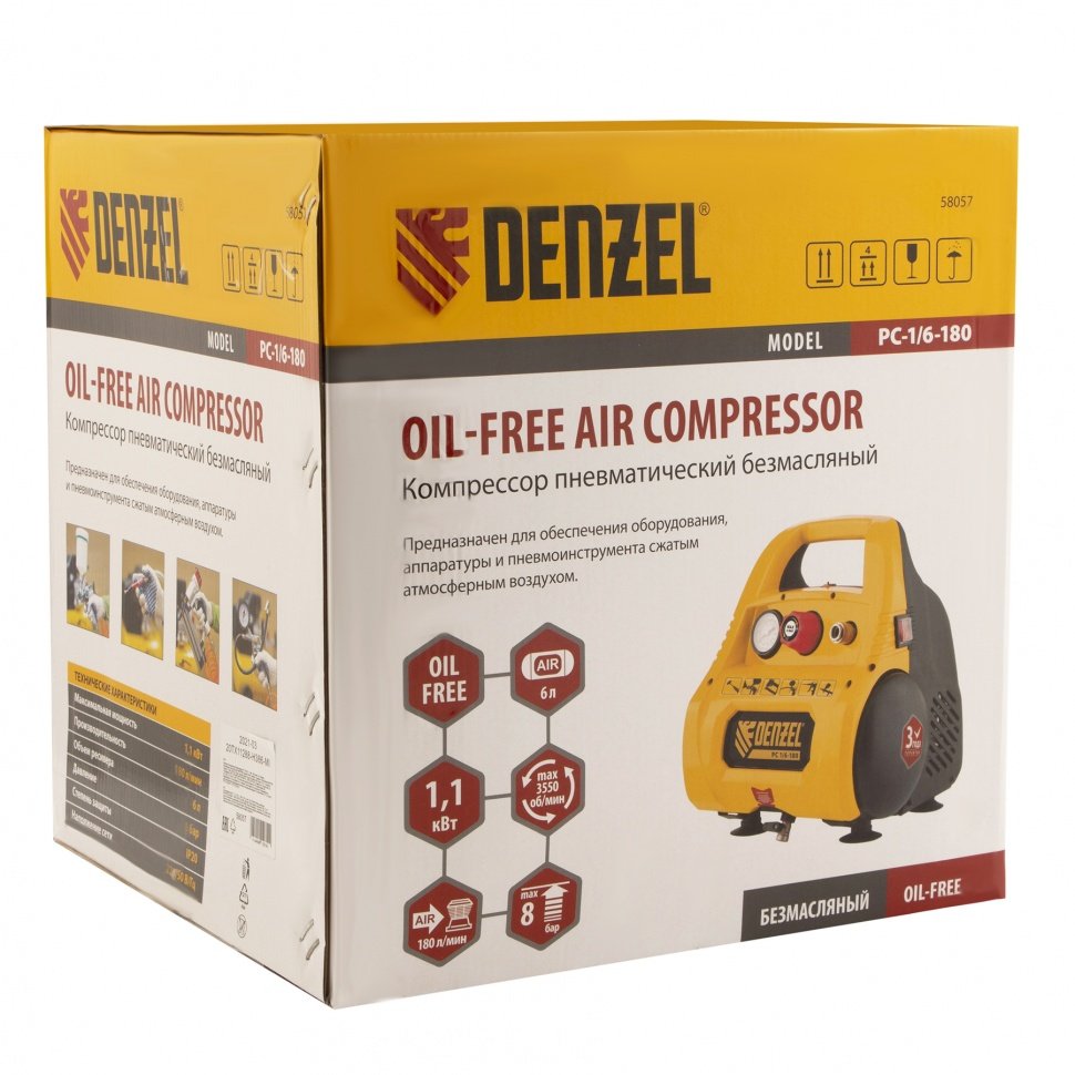 Компрессор воздушный безмасляный РС 1/6-180, 1,1 кВт, 180 л/мин, 6 л// Denzel купить в СПб цена ✅ - Все для СТО