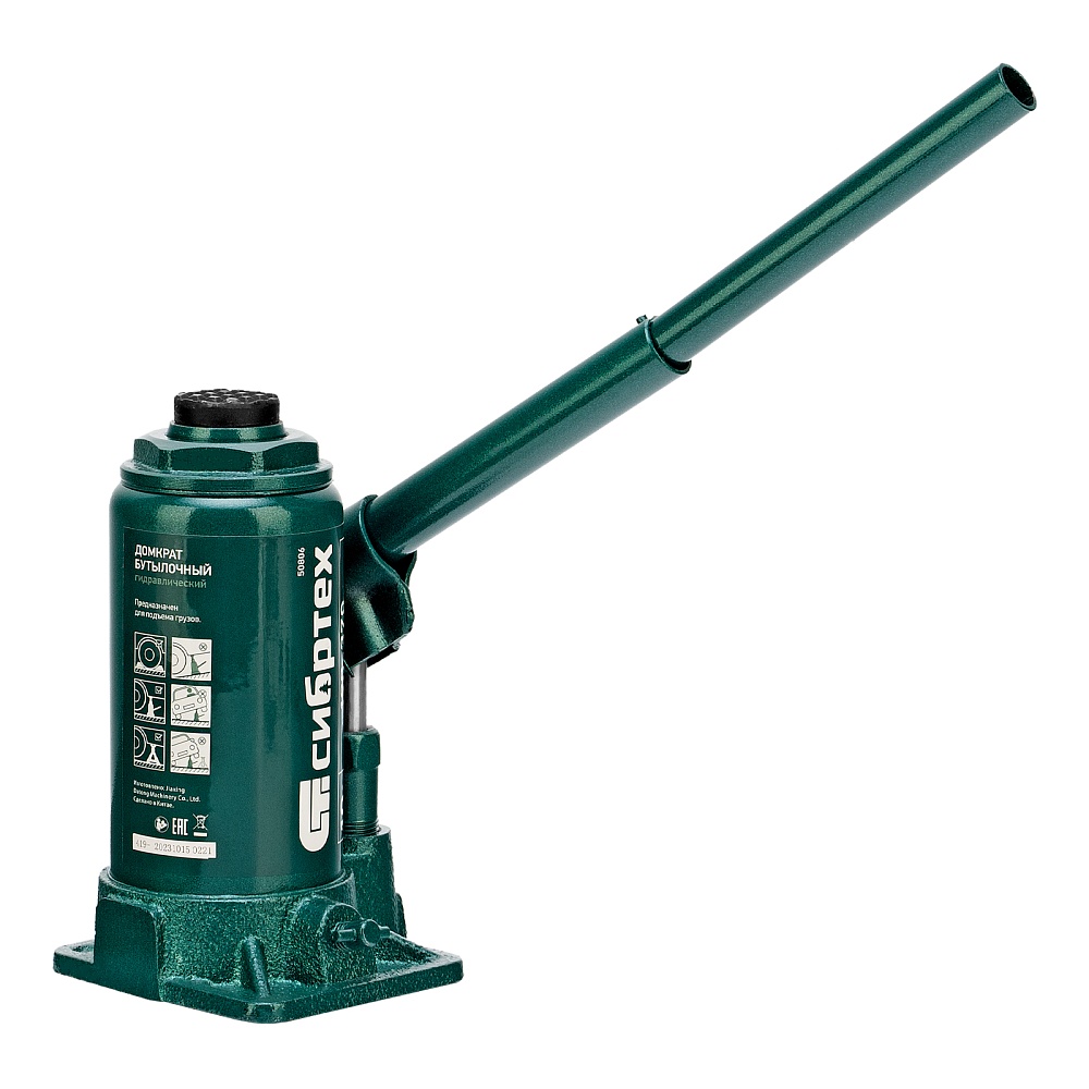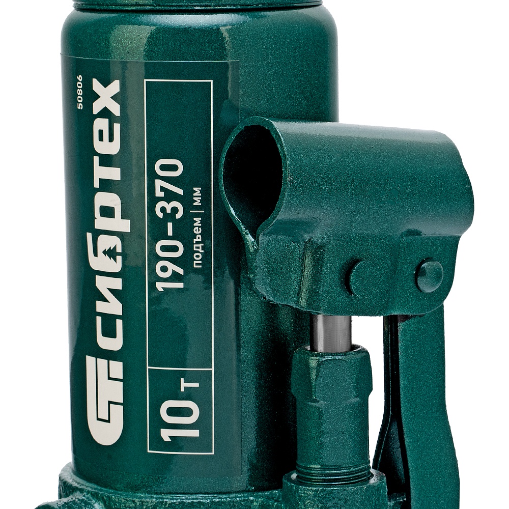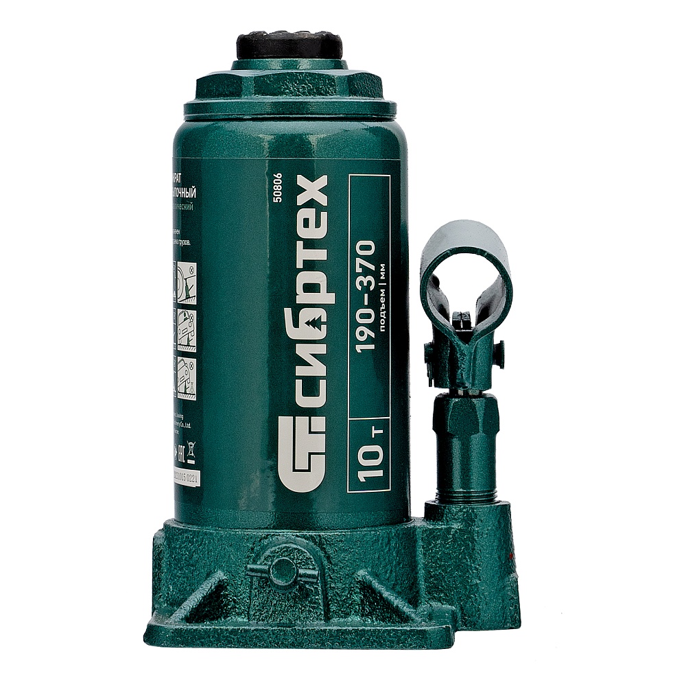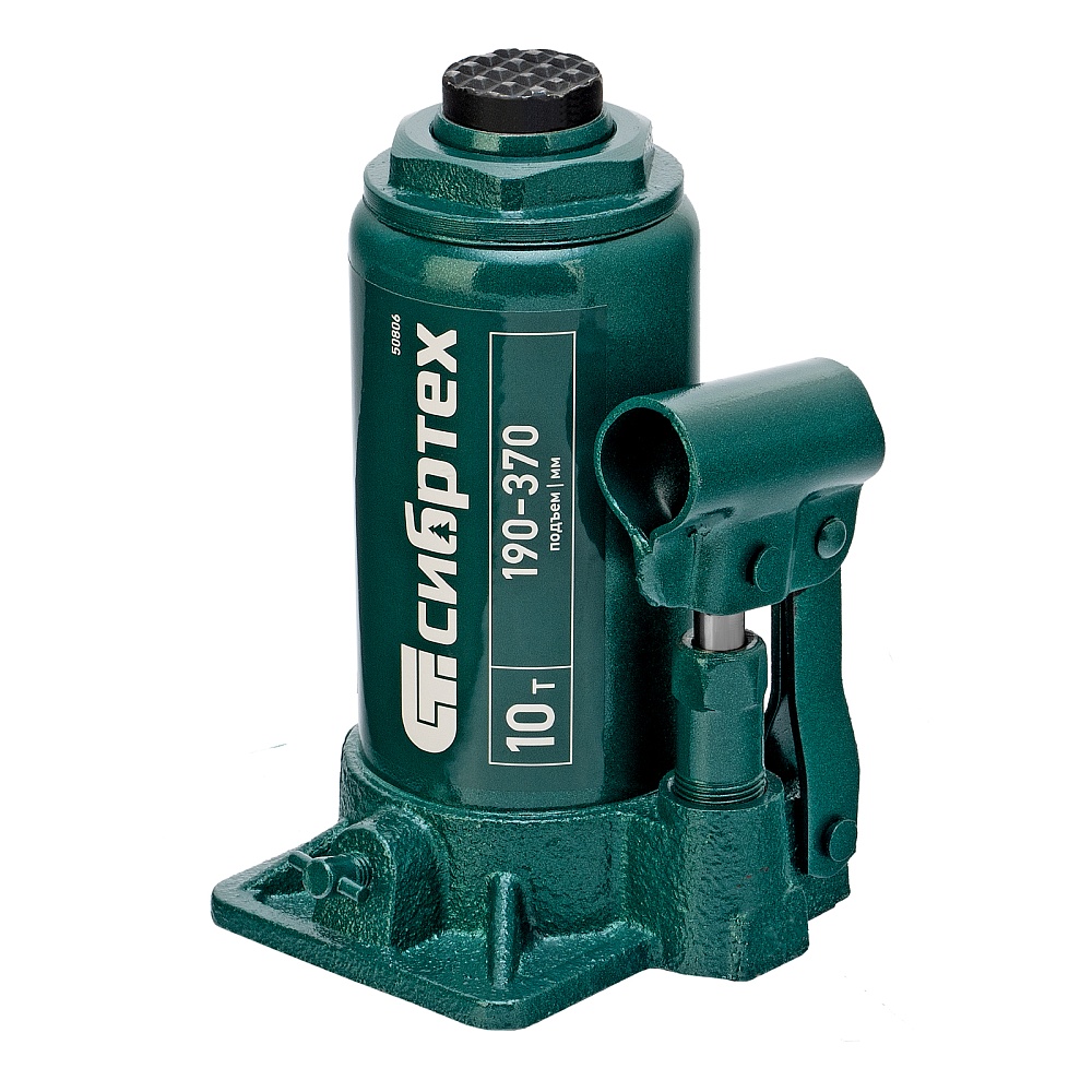 Домкрат гидравлический бутылочный Сибртех 50806 предназначен для подъема грузов массой до 10 т на высоту от 190 до 370 мм. Не требует больших усилий от пользователя и значительно облегчает рабочий процесс. Домкрат будет полезен при проведении техобслуживания машины в автосервисе или гараже.