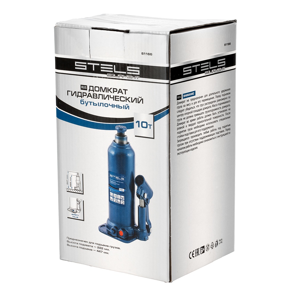 Гидравлический бутылочный домкрат Stels 51166 применяется для быстрого поднятия грузов весом до 10 т на высоту 222-447 мм. Оптимален для автомобилей с большим клиренсом. Домкрат будет полезен автолюбителям и профессионалам для ремонта транспортного средства.