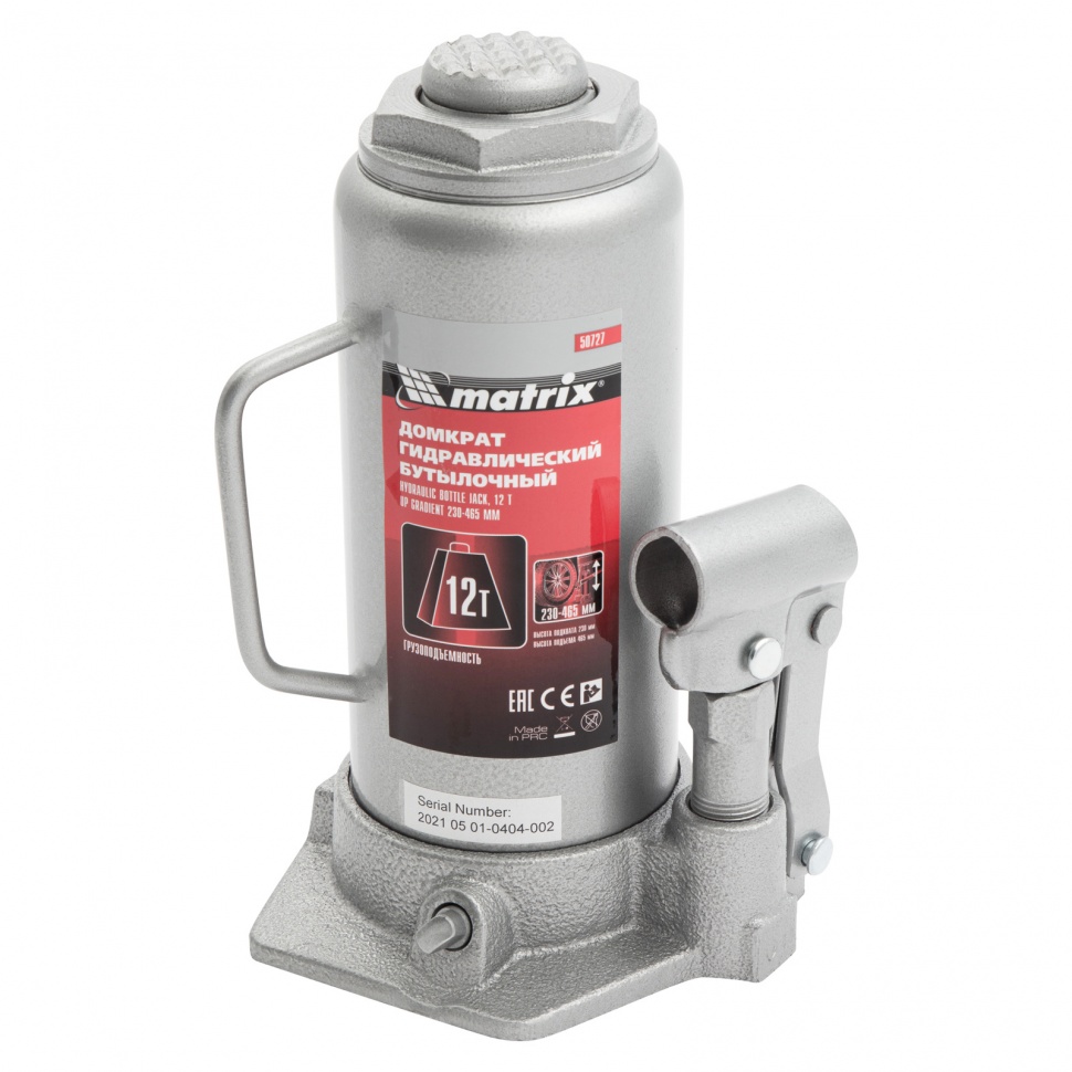 Домкрат гидравлический бутылочный, 12 т, высота подъема 230-465 мм Matrix купить в СПб цена ✅ - Все для СТО