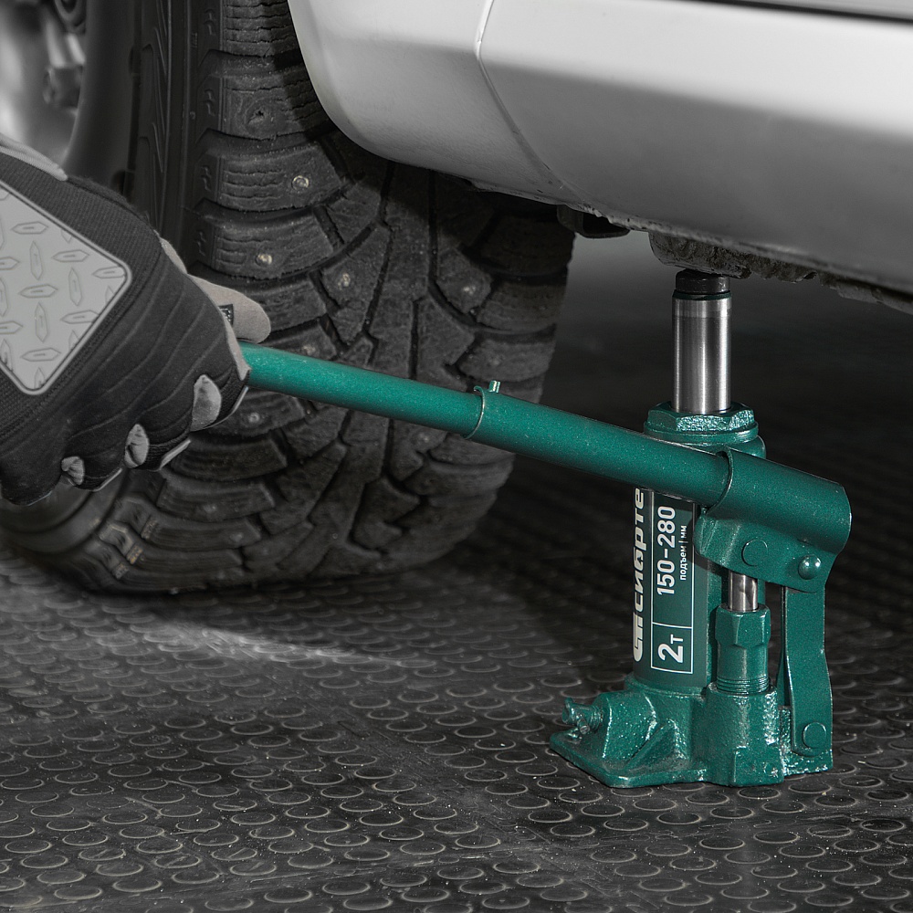 Домкрат гидравлический бутылочный Сибртех 50800 предназначен для подъема грузов массой до 2 т на высоту от 150 до 280 мм. Не требует больших усилий от пользователя и значительно облегчает рабочий процесс. Домкрат будет полезен при проведении техобслуживания машины в автосервисе или гараже.