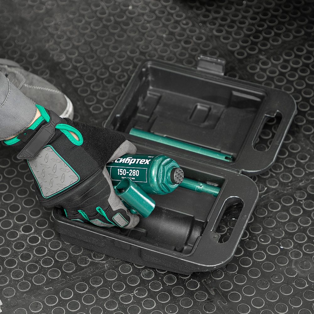Домкрат гидравлический бутылочный, 2 т, 150-280 мм, в пласт. кейсе Сибртех