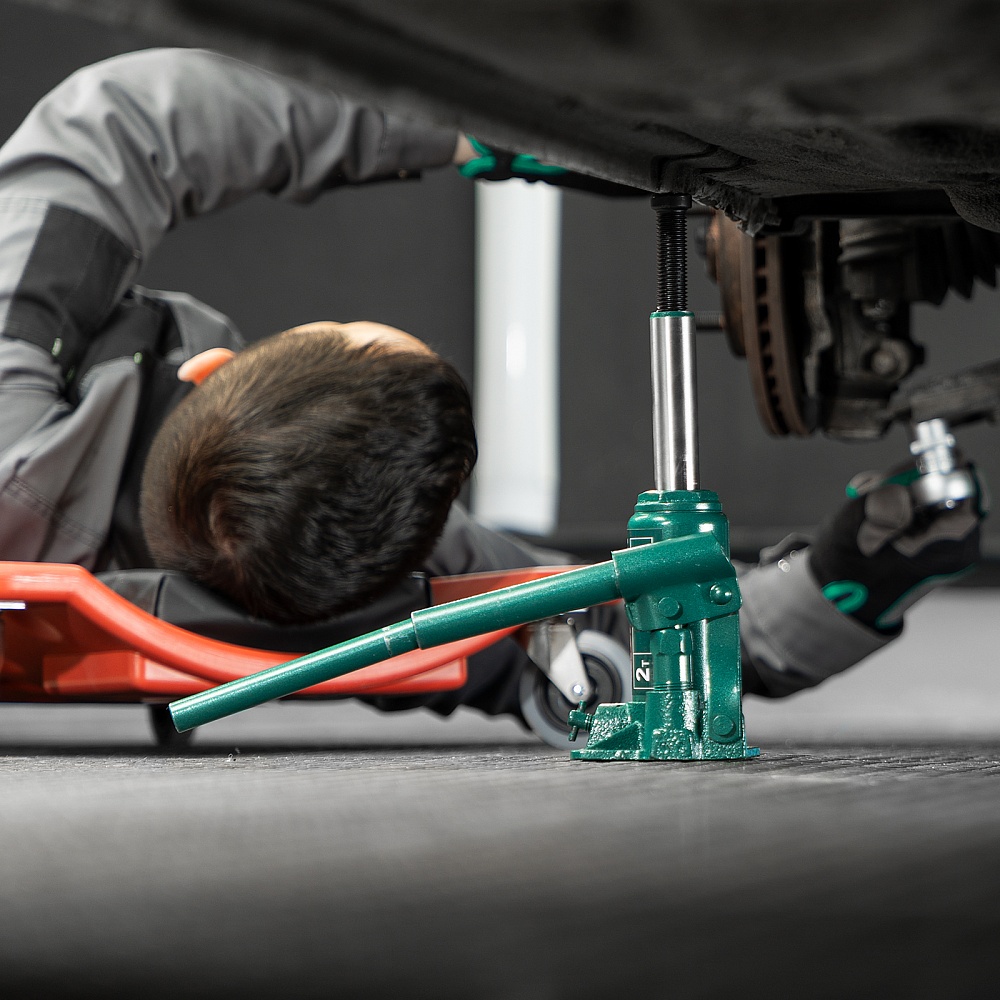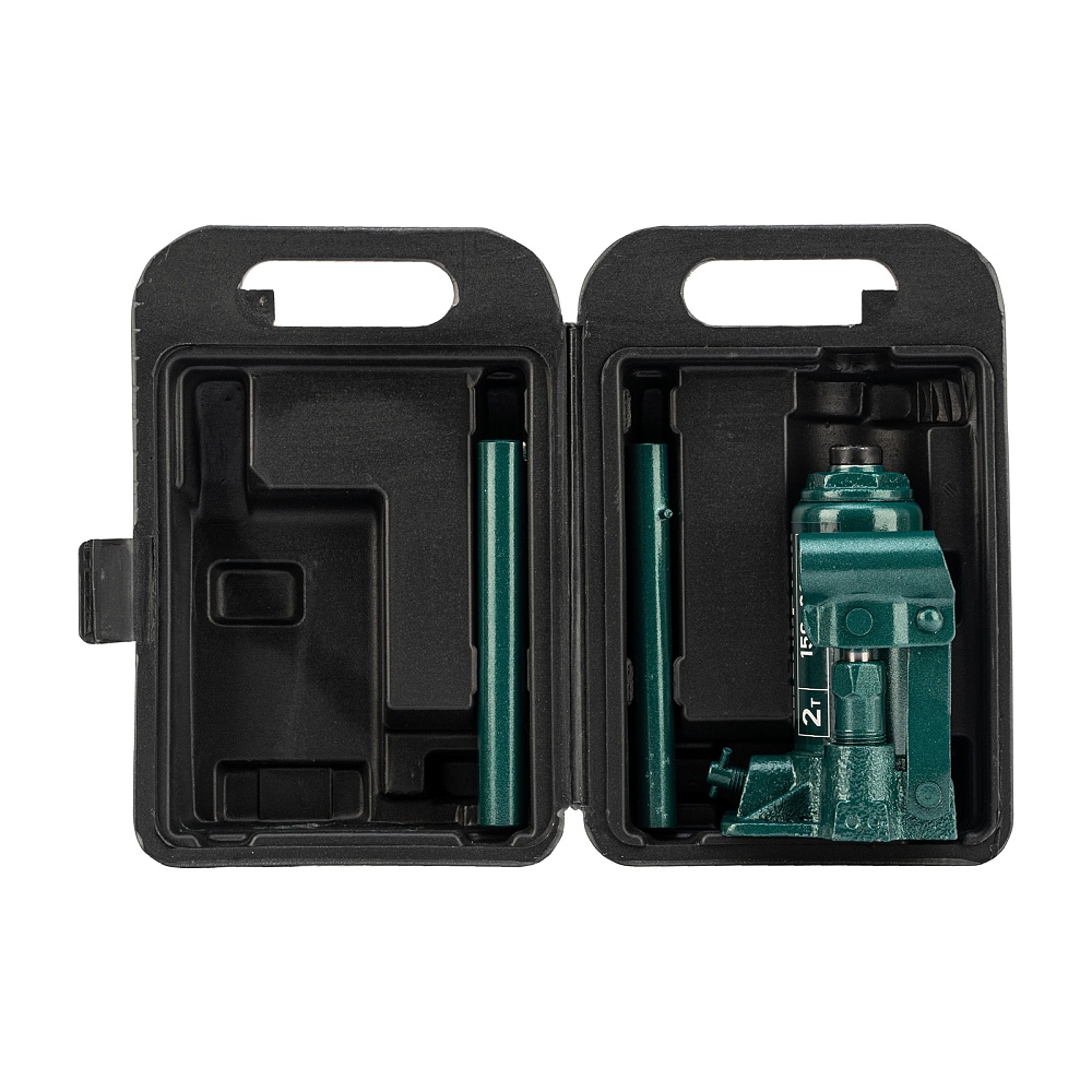 - Удобное хранение и транспортировка — домкрат весит всего 1,9 кг и поставляется в прочном пластиковом кейсе с рукояткой.