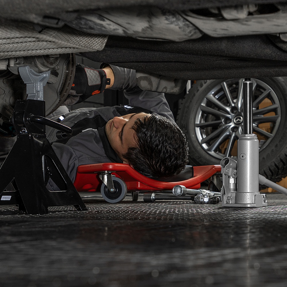 - Удобная транспортировка — домкрат весом 2,5 кг легко помещается в багажник авто.