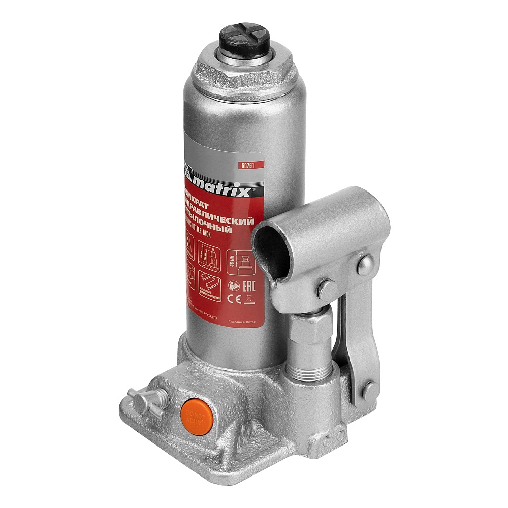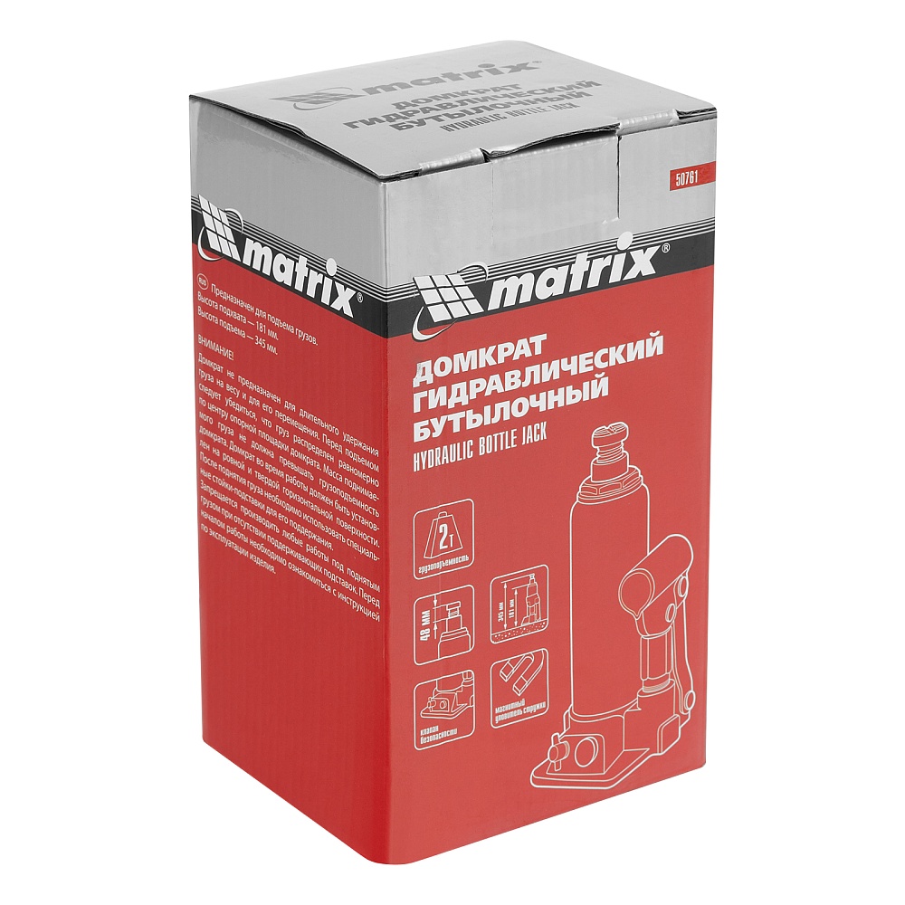 Домкрат гидравлический бутылочный, 2 т, h подъема 181-345 мм Matrix