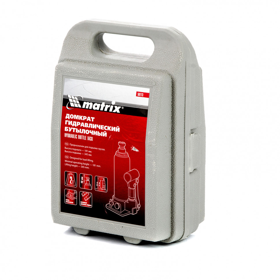 Домкрат гидравлический бутылочный, 2 т, h подъема 181-345 мм, в пластиковом кейсе Matrix