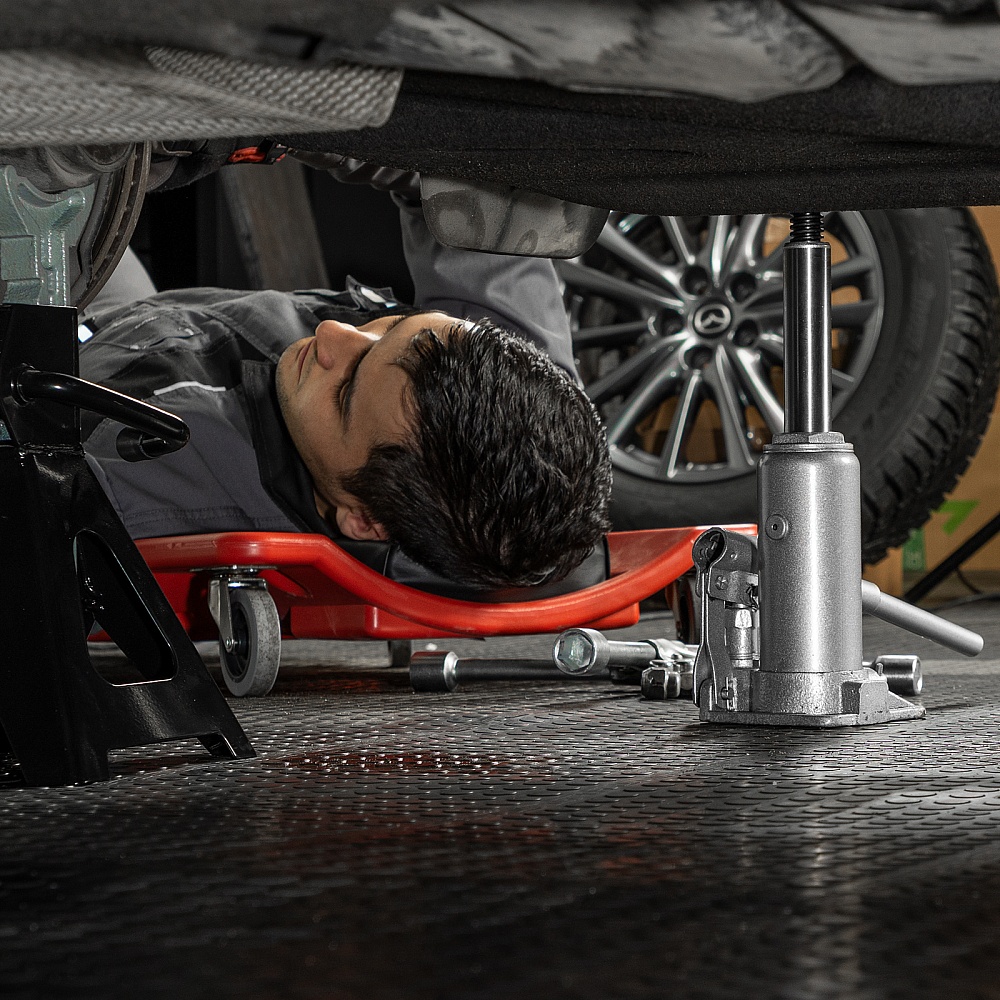 - Удобная транспортировка — домкрат комплектуется прочным пластиковым кейсом.