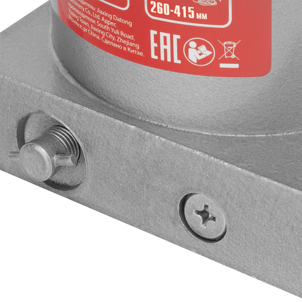 • Надежная конструкция — домкрат имеет устойчивое чугунное основание, корпус из высокопрочной стали, а также полированный шток, увеличивающий срок службы.