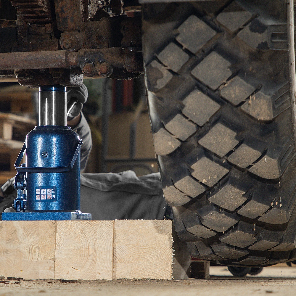 • Безопасная эксплуатация — благодаря предохранительному клапану домкрат не поднимает грузы тяжелее 32 т.