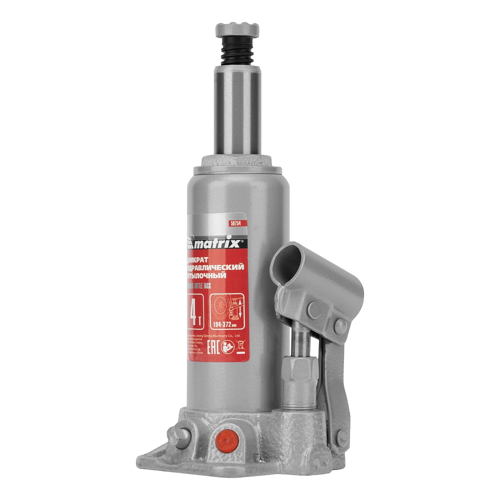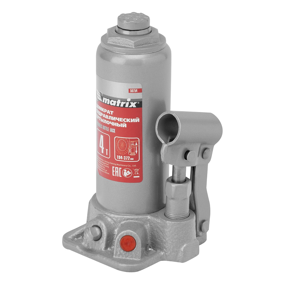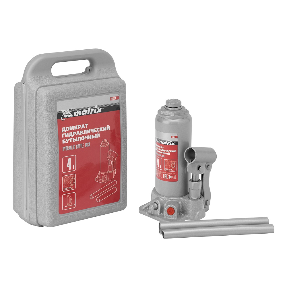 Домкрат гидравлический бутылочный, 4 т, высота подъема 194-372 мм, в пластиковый кейсе Matrix