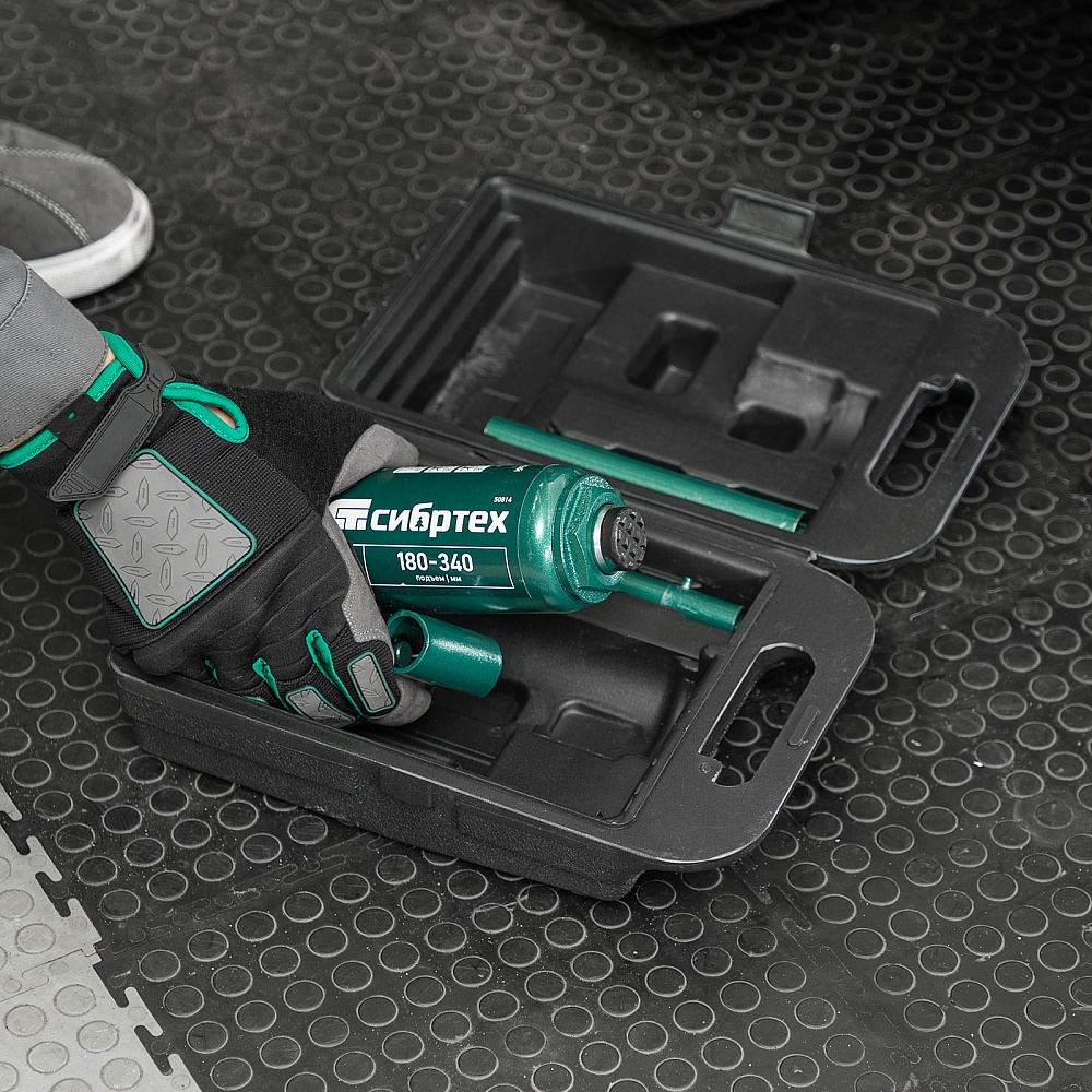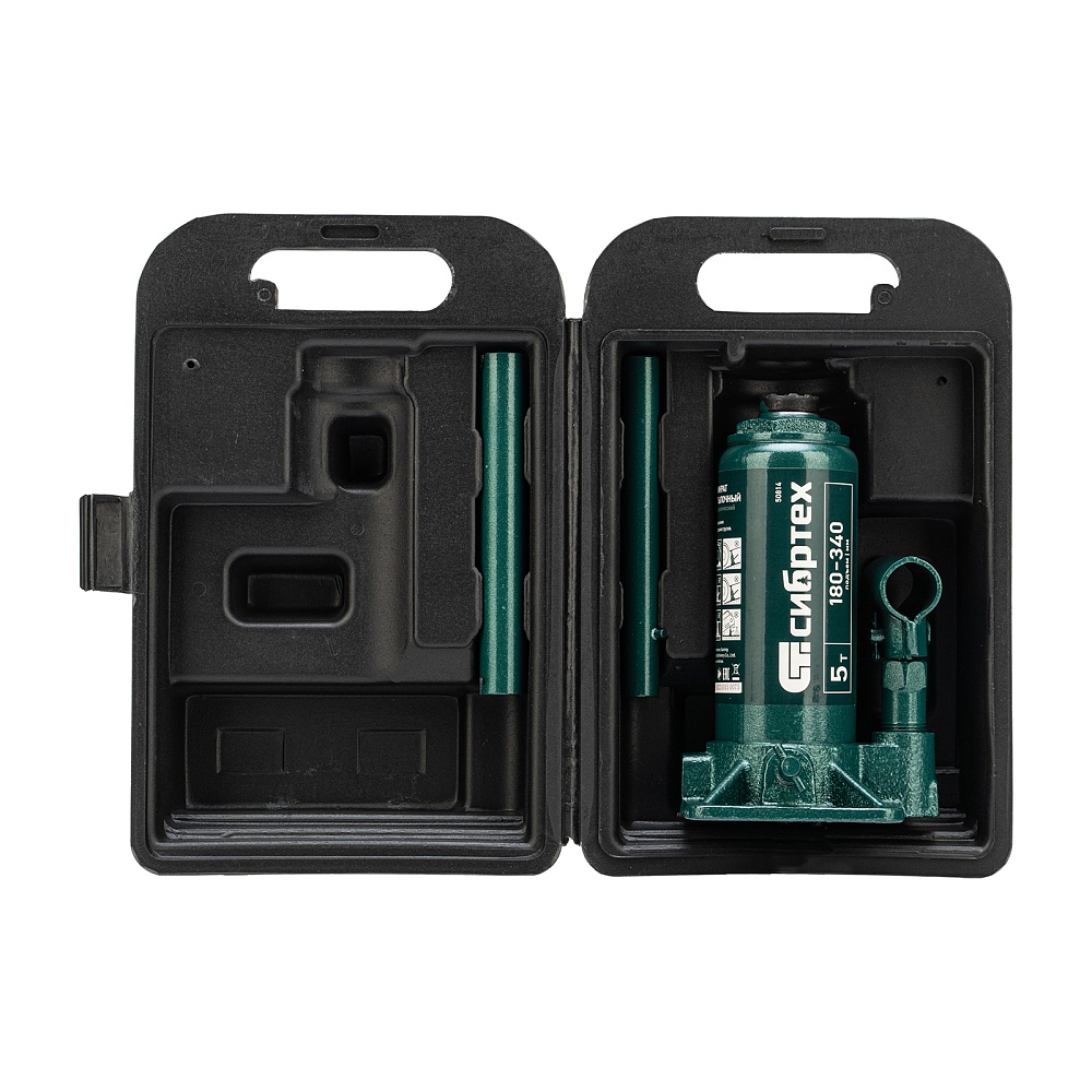 Домкрат гидравлический бутылочный, 5 т, 180-340 мм, в пласт. кейсе Сибртех