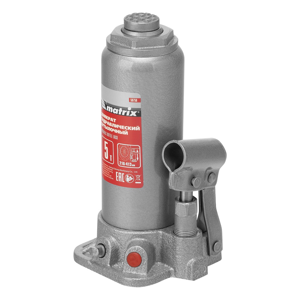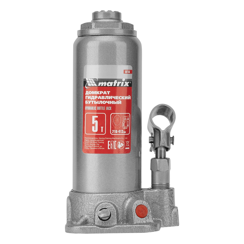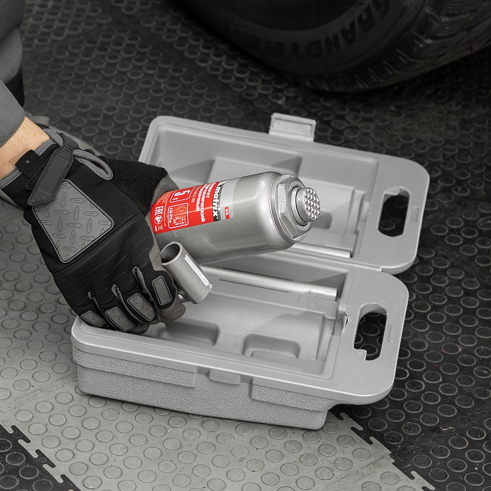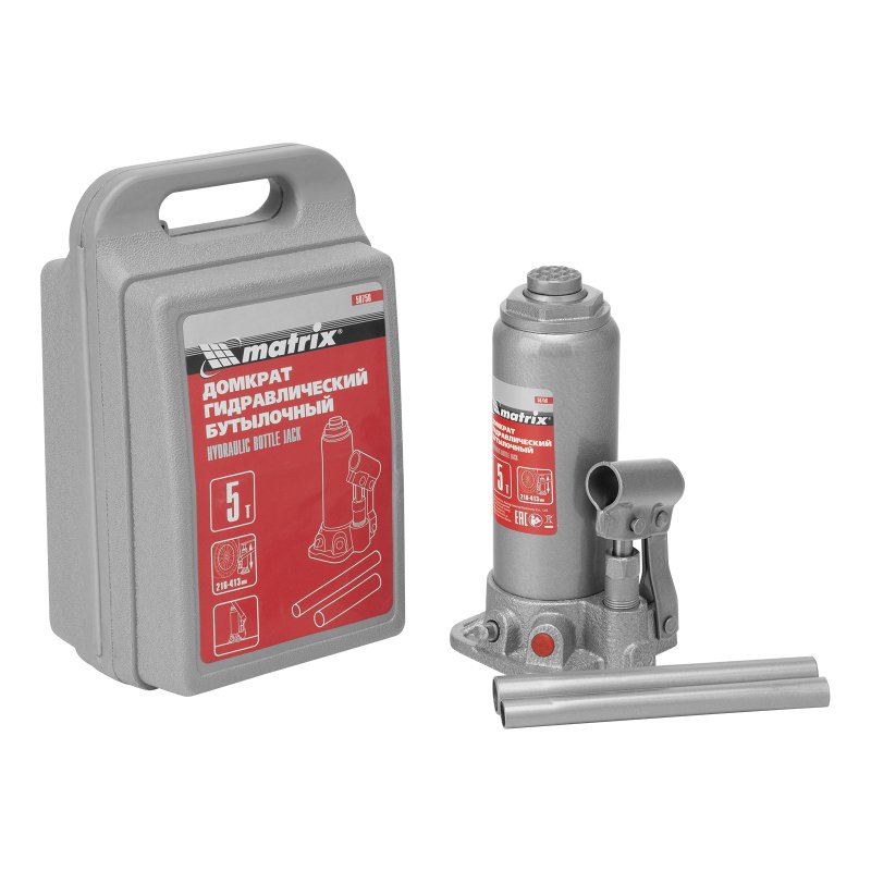 Домкрат гидравлический бутылочный, 5 т, высота подъема 216-413 мм, в пластиковый кейсе Matrix