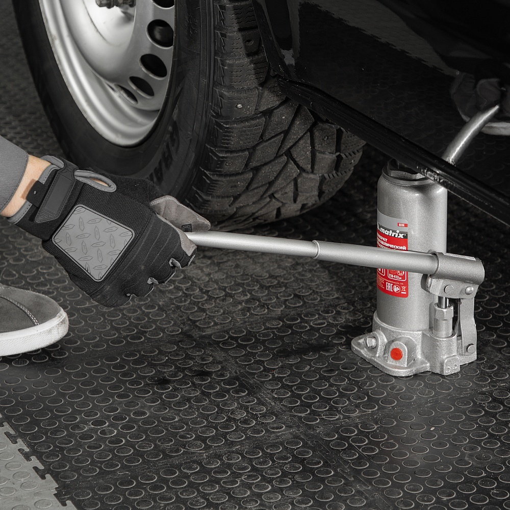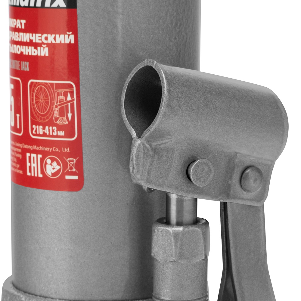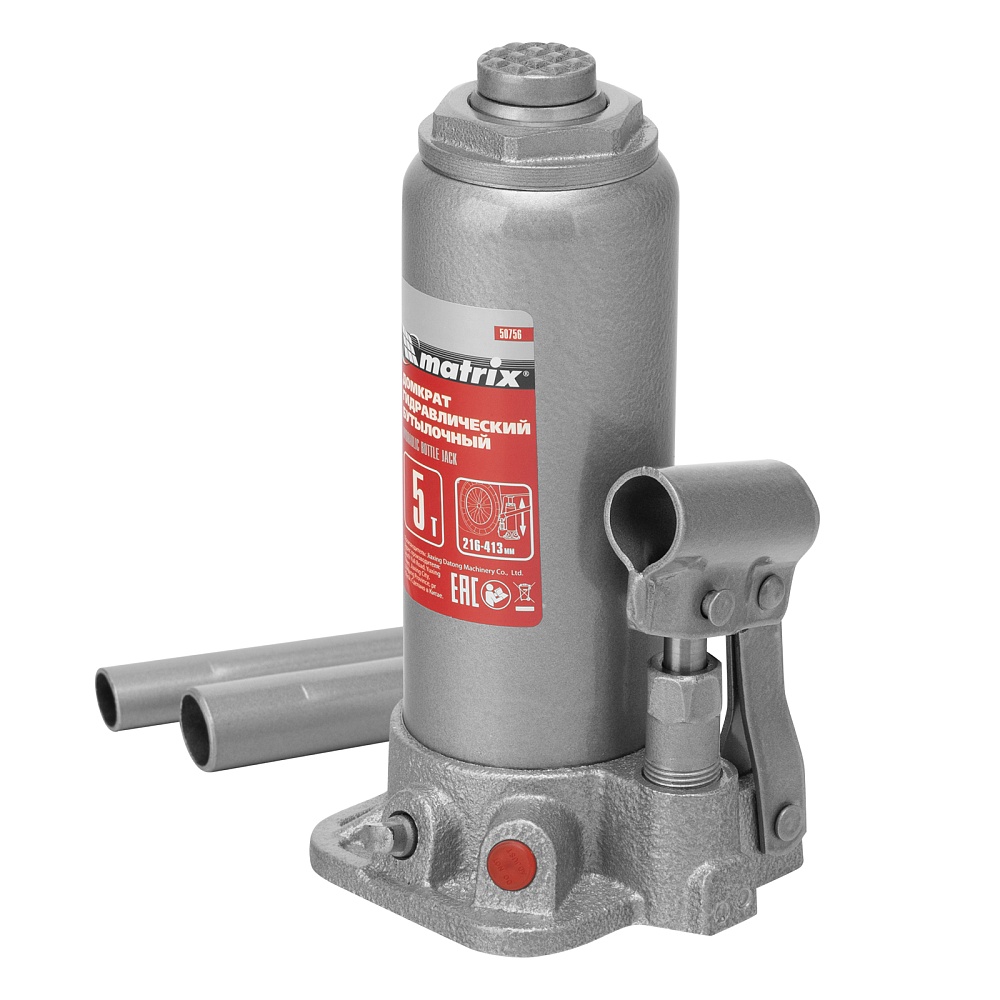 Домкрат гидравлический бутылочный, 5 т, высота подъема 216-413 мм, в пластиковый кейсе Matrix