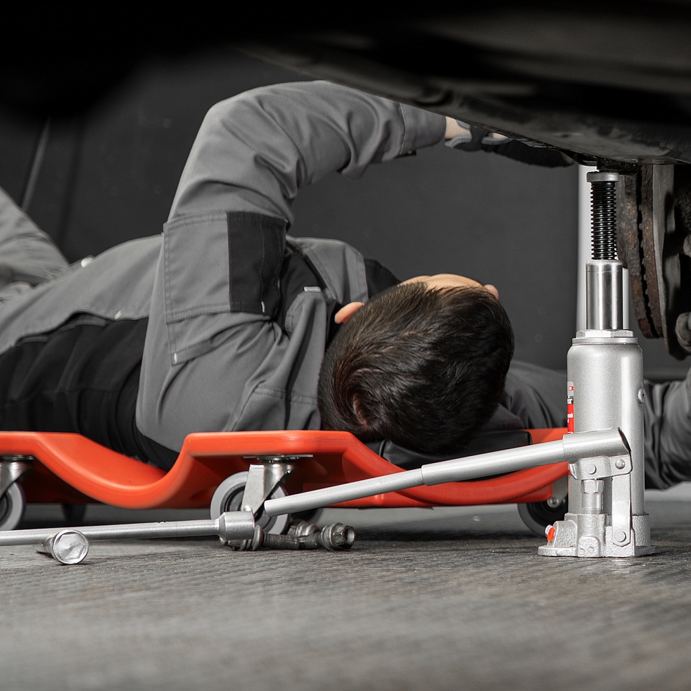 - Удобное хранение и транспортировка — домкрат поставляется в прочном пластиковом кейсе с ручкой.