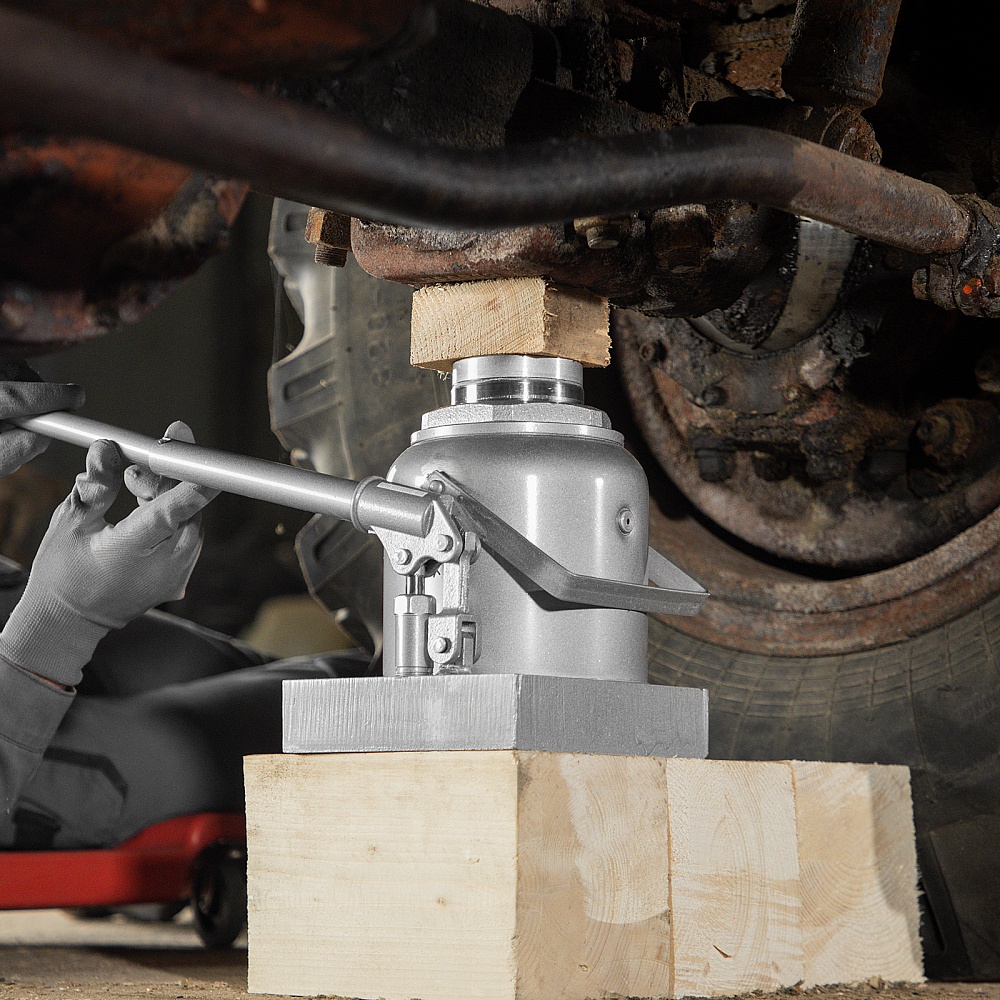 • Надежная конструкция — домкрат имеет устойчивое чугунное основание, корпус из высокопрочной стали, а также полированный шток, увеличивающий срок службы.