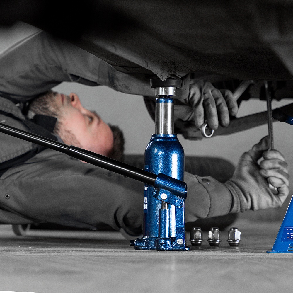 • Безопасная эксплуатация — благодаря предохранительному клапану домкрат не поднимает грузы тяжелее 6000 кг.