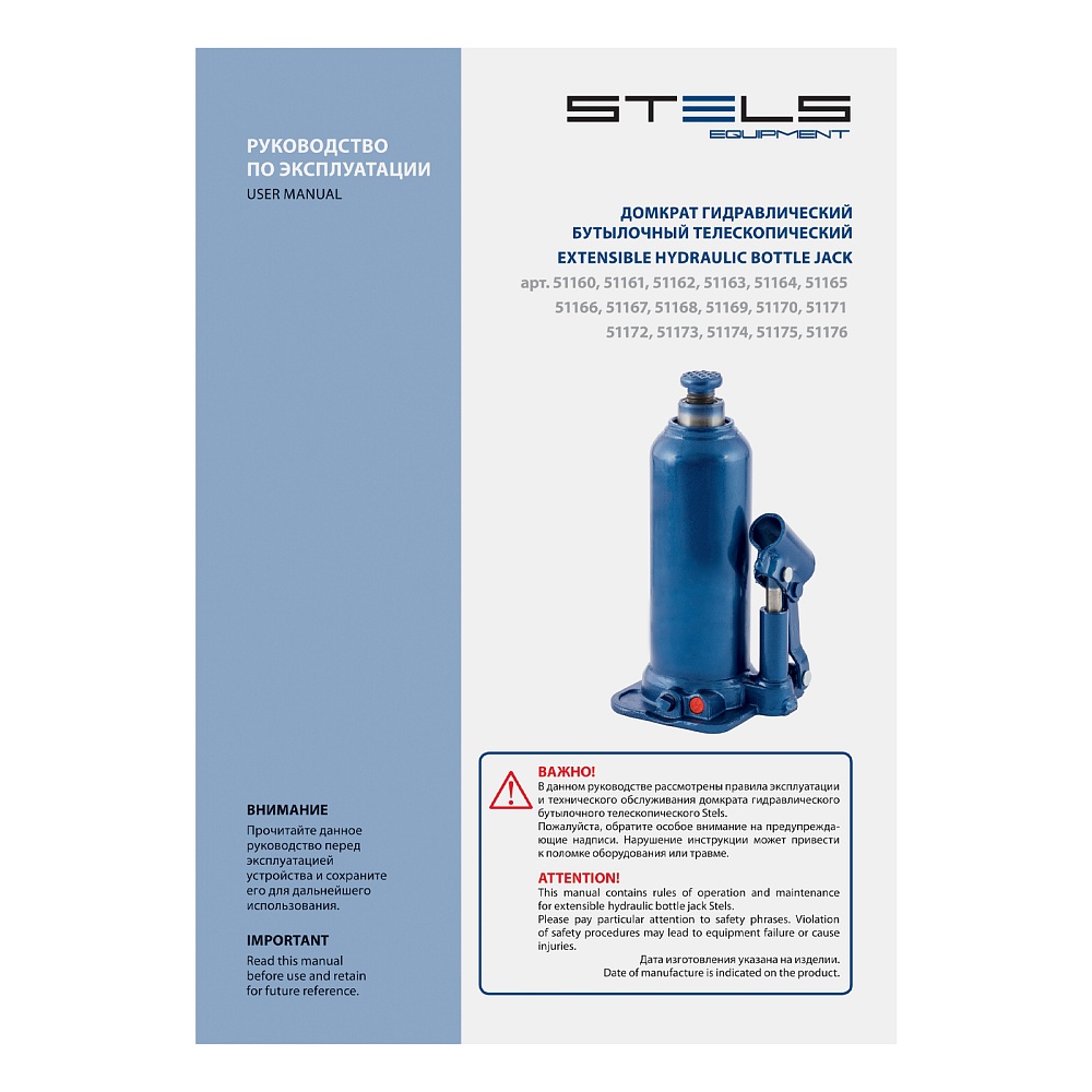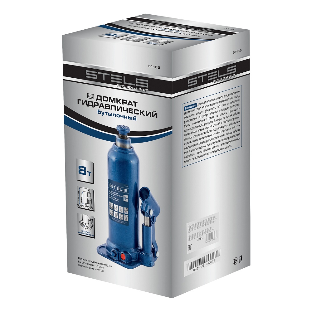 Домкрат гидравлический бутылочный, 8 т, h подъема 222-447 мм Stels купить в СПб цена ✅ - Все для СТО