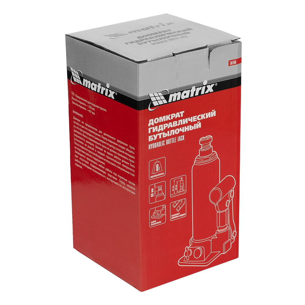 Домкрат гидравлический бутылочный, 8 т, h подъема 230-457 мм Matrix