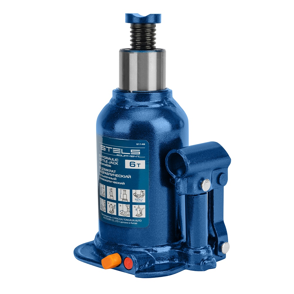 Домкрат гидравлический бутылочный Stels 51149, телескопический, используется для поднятия грузов весом до 6 т с на высоту 180-410 мм. Не требует больших усилий и оптимален для автомобилей с большим клиренсом. Домкрат можно использовать в гараже для самостоятельного ремонта машины или в автосервисе для решения профессиональных задач.