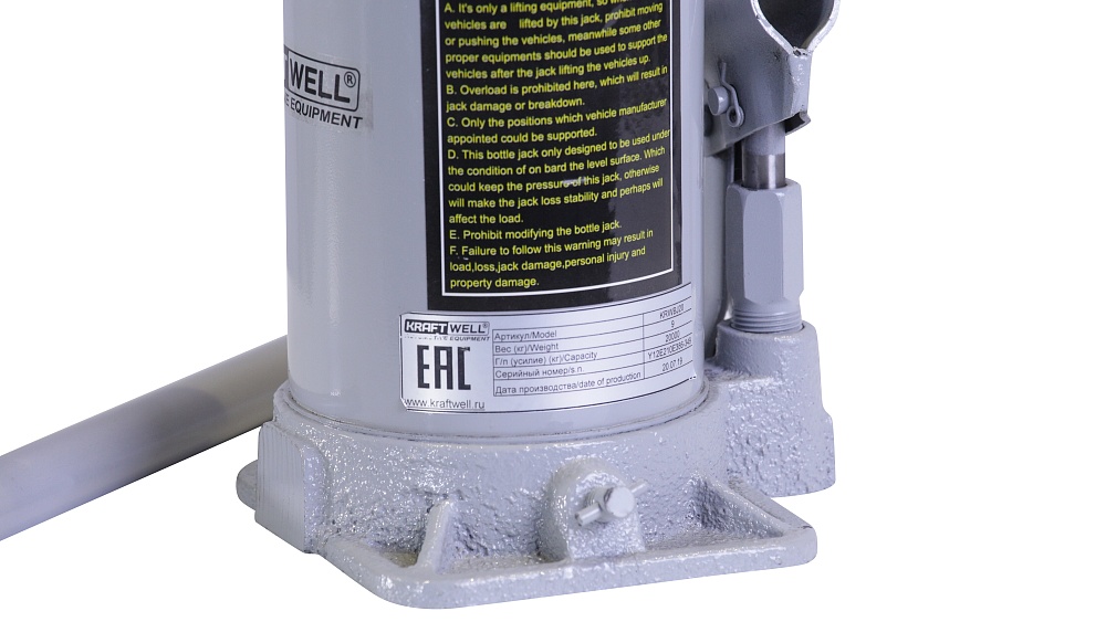 KraftWell KRWBJ20 Домкрат бутылочный 20т купить в СПб цена ✅ - Все для СТО