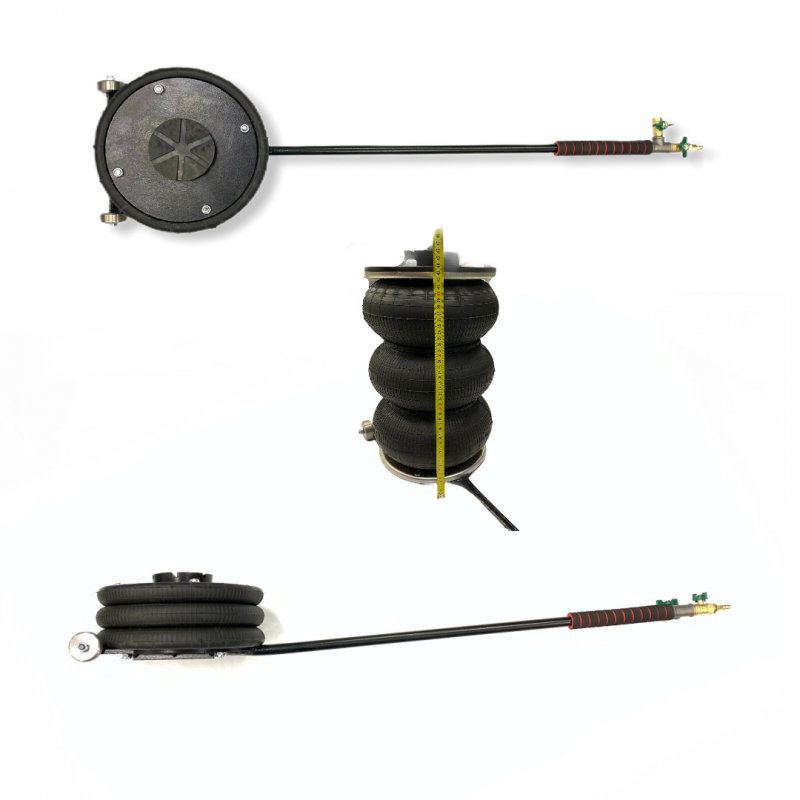 Домкрат подкатной пневматический г/п 4000кг, подхват 165-445мм, рабочее давление 6 бар. Грузоподъёмность домкрата колеблется от 1 тонны до 4 тонн, в зависимости от рабочего давления в пневмопроводе. Для более продолжительной работы телескопического стабилизирующего устройства, находящегося внутри гофрированной камеры, нагрузку необходимо располагать строго по центру домкрата.