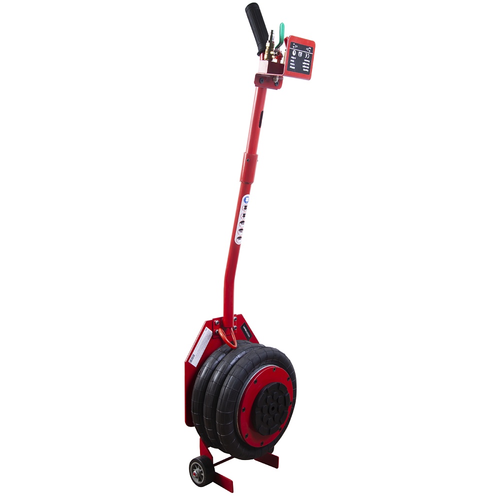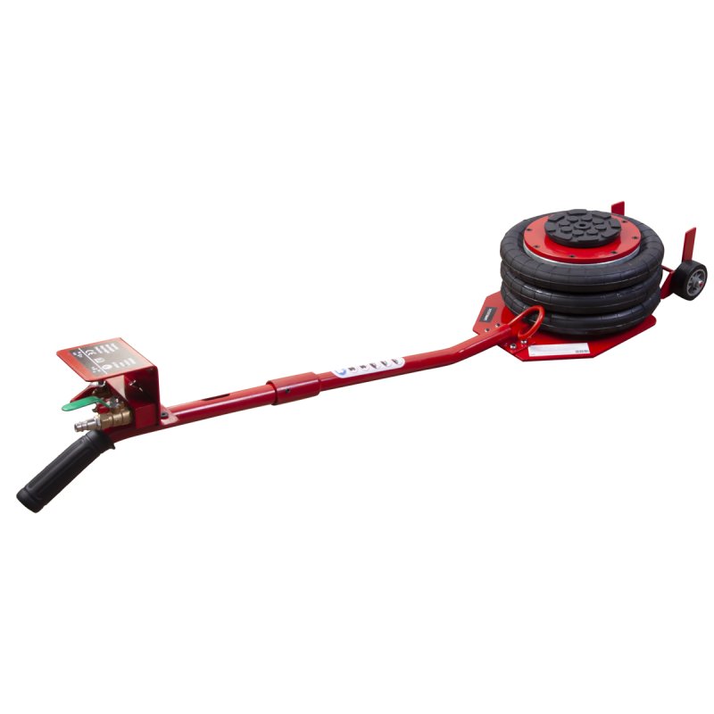 Пневматический подкатной домкрат для подъема автомобилей. Не нуждается в техническом обслуживании, прост в использовании, очень устойчив благодаря внутреннему телескопическому цилиндру. Подключение к воздушной магистрали осуществляется при помощи быстросъемного фитинга.