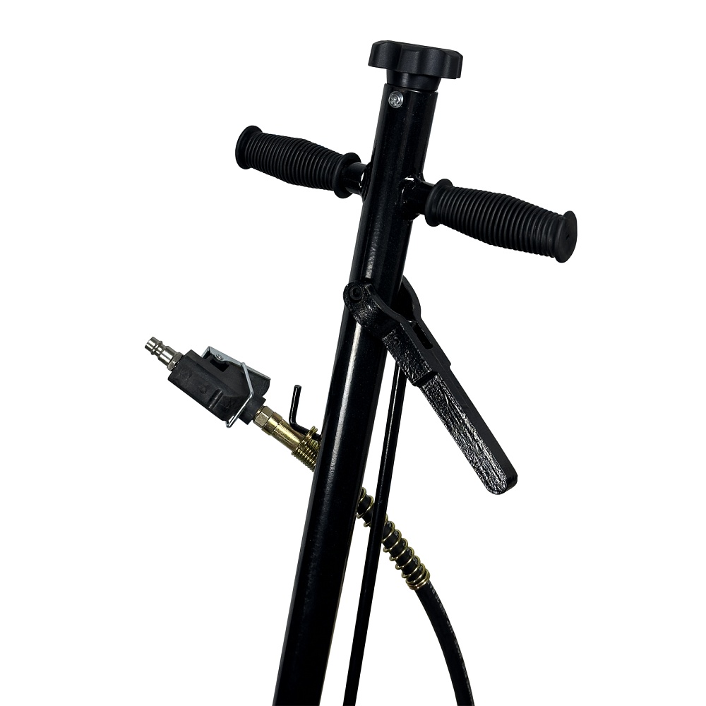 Пневмогидравлический подкатной домкрат Т22022 значительно облегчает подъем легковых и грузовых машин.