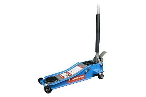 Подкатной гидравлический домкрат имеет ручной привод и предназначен для подъема машины при осуществлении ремонтных работ — к примеру, замены колес. Он отлично подойдет для личного использования на даче, в гараже или для работы на небольшой шиномонтажной станции.